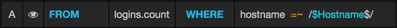 The important thing is that you explicitly have to combine the two filters with the boolean operator AND. If you forget the AND, the default operator OR will be applied which would result in a mess because it would mean: either collect the logins.count metric or return any metric where hostname is $Hostname. Remember: the series name is just another tag. There is another important point: if a value you want to filter by contains a whitespace you have to quote it.