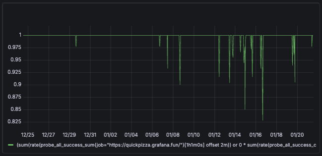 Success ratio = sum by (probe) (rate of successful probe executions)