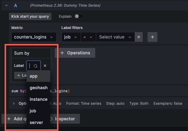 Builder mode helps you build queries using a visual interface. This option is best for users who have limited experience working with Prometheus and PromQL.