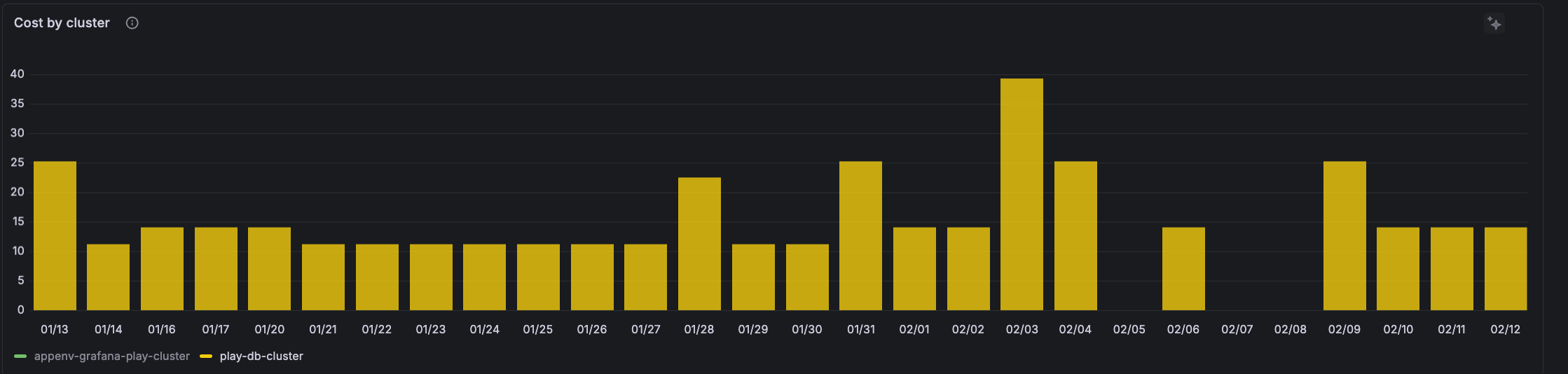 Use the Cost by cluster panel to view costs over whatever time period you choose from the time range selector. You can:
