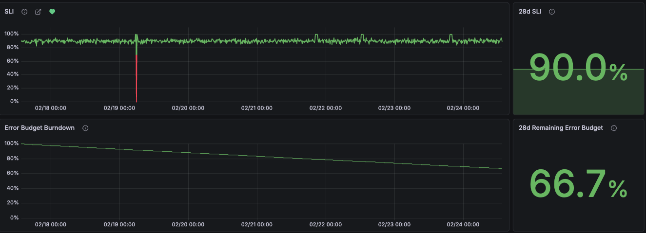 Tracking reliability signals in dashboards and alerting on long evaluation periods can be the solution. SLOs are the better fit: the error budget doesn’t reset and tracks every failure within the SLO window.