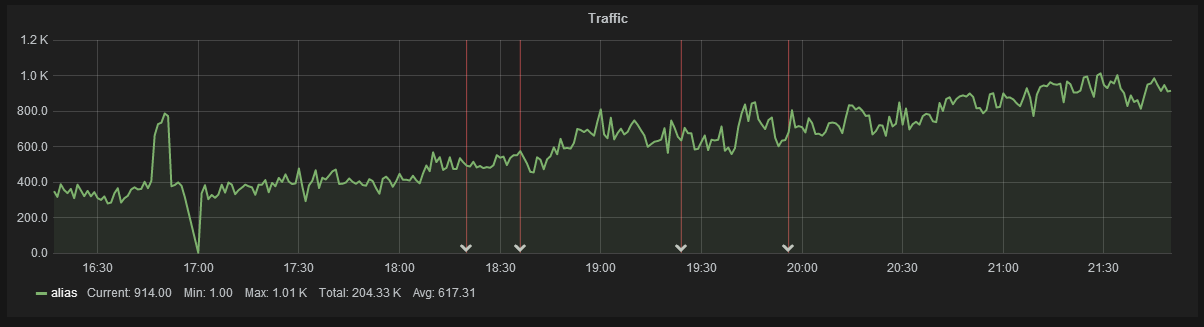 Annotations provide a way to mark points on the graph with rich events. When you hover over an annotation you can get title, tags, and text information for the event.
