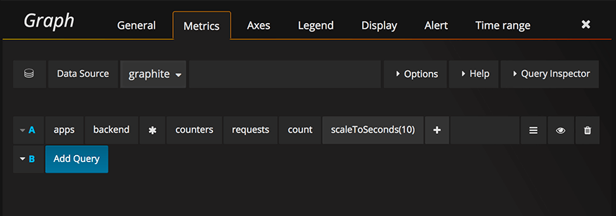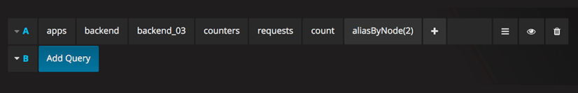 Grafana has an advanced Graphite query editor that lets you quickly navigate the metric space, add functions, change function parameters and much more. The editor can handle all types of graphite queries. It can even handle complex nested queries through the use of query references.