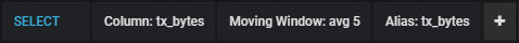 avg(tx_bytes) OVER (ORDER BY "time" ROWS 5 PRECEDING) AS "tx_bytes"You may add further value columns by clicking the plus button and selecting Column from the menu. Multiple value columns will be plotted as separate series in the graph panel.