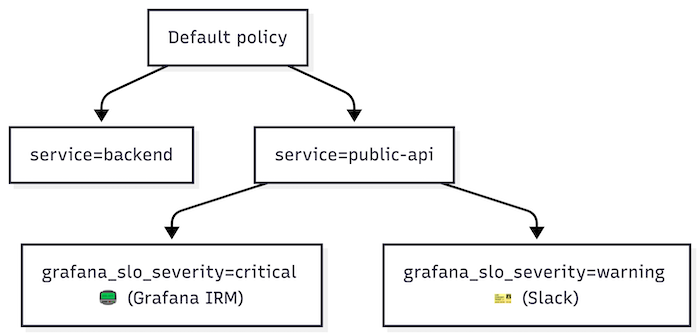 Below is an example of a basic notification policy tree that handles SLO alerts: