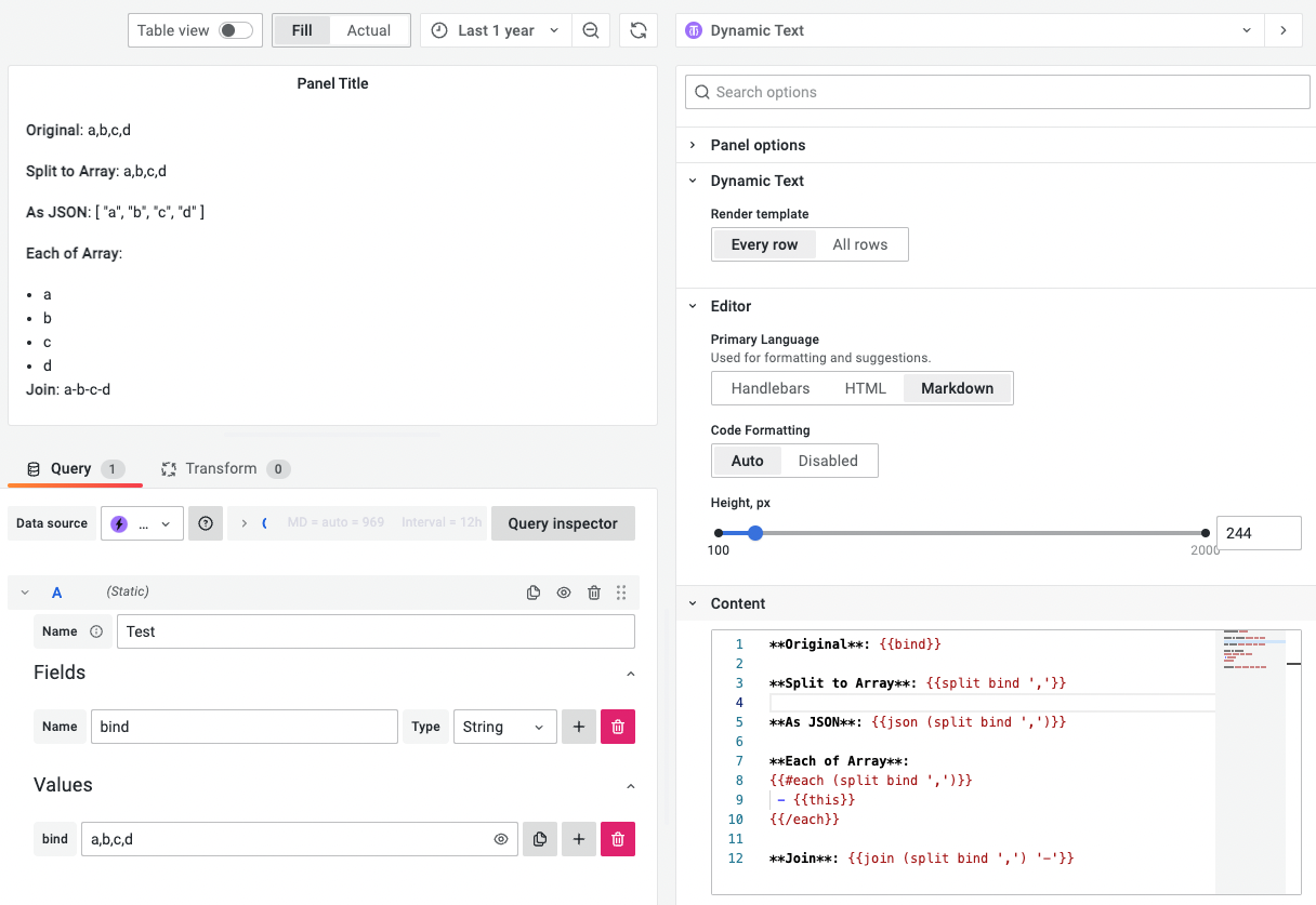 Presents an object (JSON) or an array as a formatted string. Markdown supports the syntax highlighting.