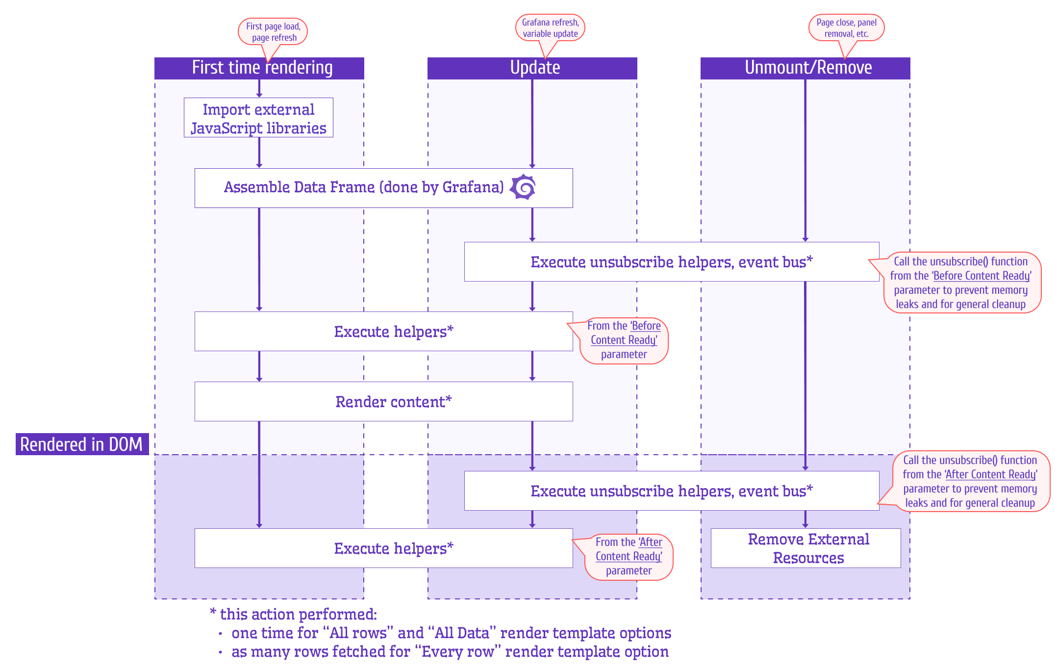 - Every row: The template applies to each row returned by your query. Your template renders as many times as there are fetched rows.