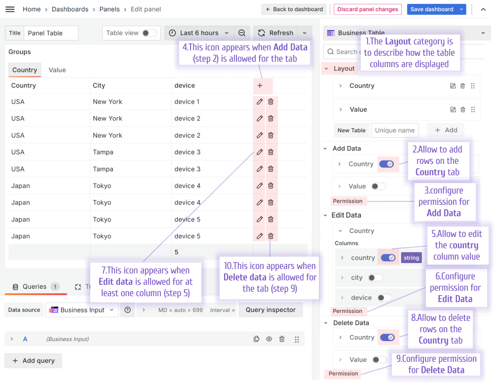 Adding and deleting rows is supported starting from Business Table 1.9.0.