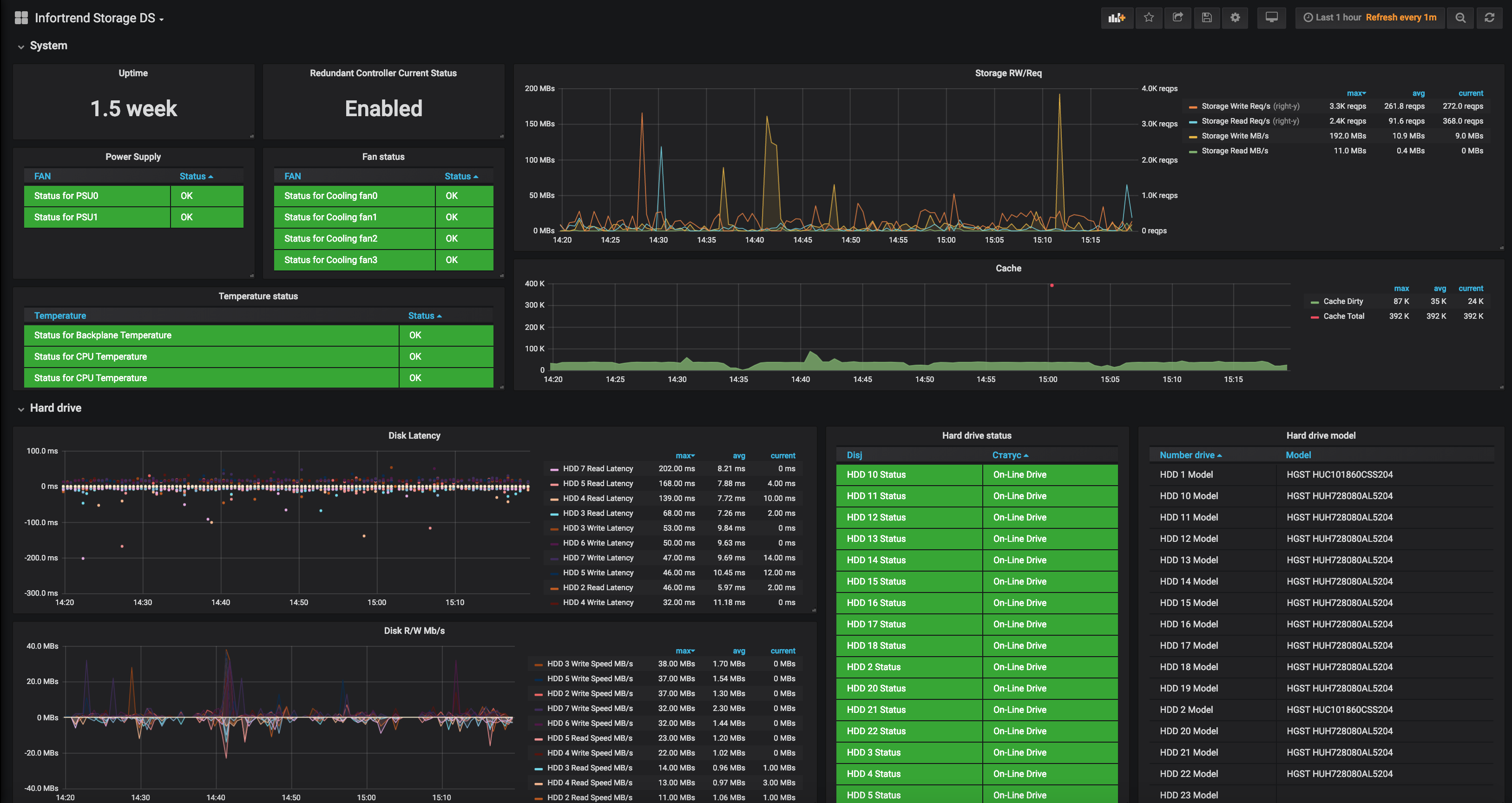 https://github.com/roysbike/infortrend-ds-zabbix-grafana Template for Zabbix 4.x Infortrend DS