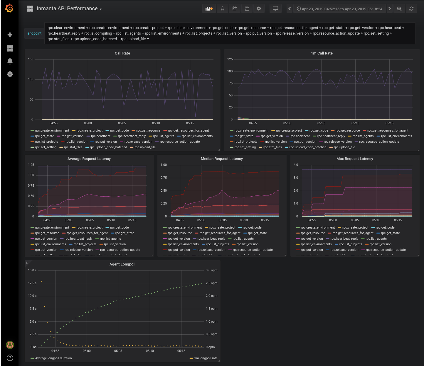 This dashboard show an overview of the API performance for the inmanta orchestrator