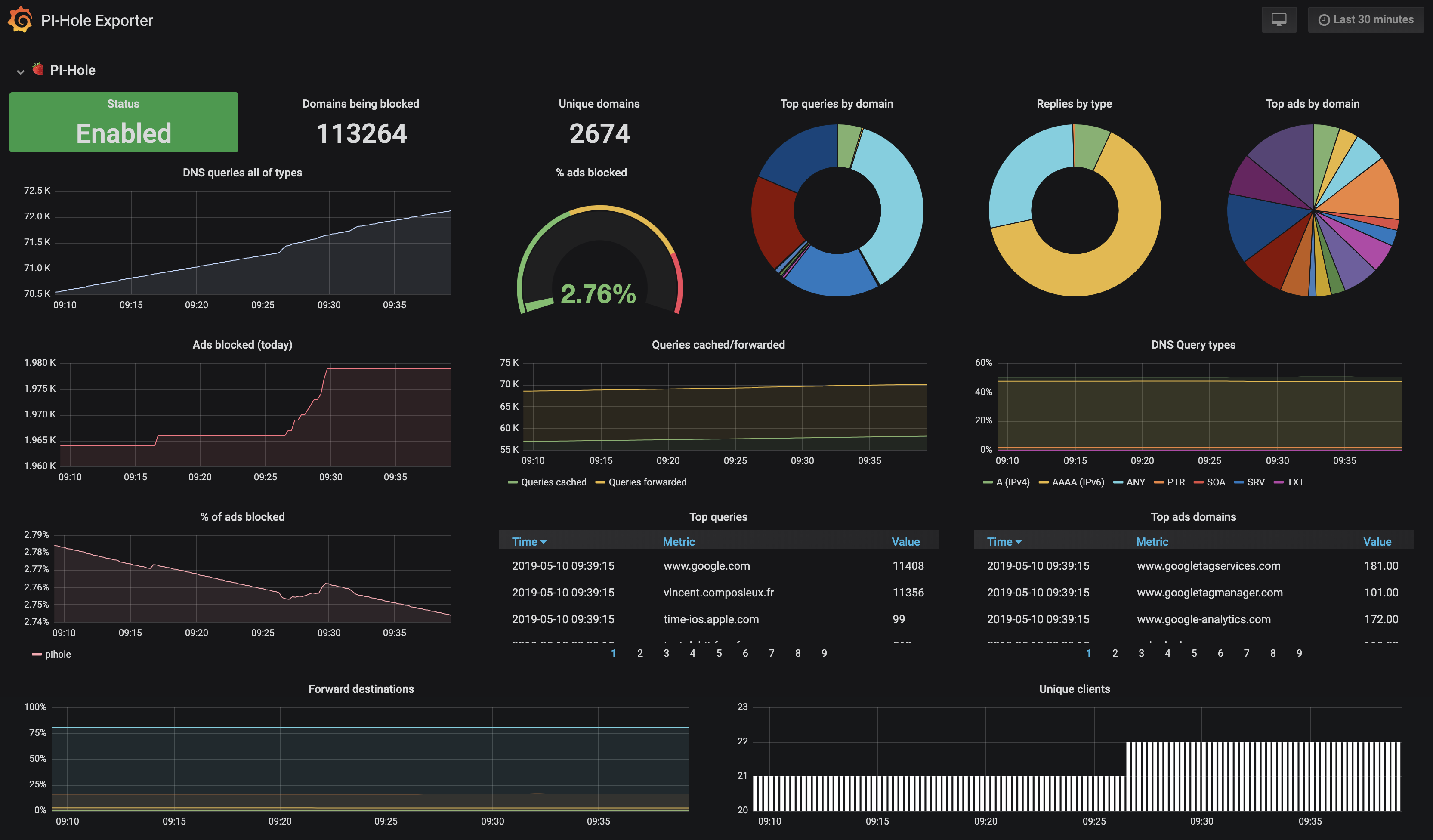 This is a Pi-hole dashboard when using the https://github.com/eko/pihole-exporter Prometheus exporter
