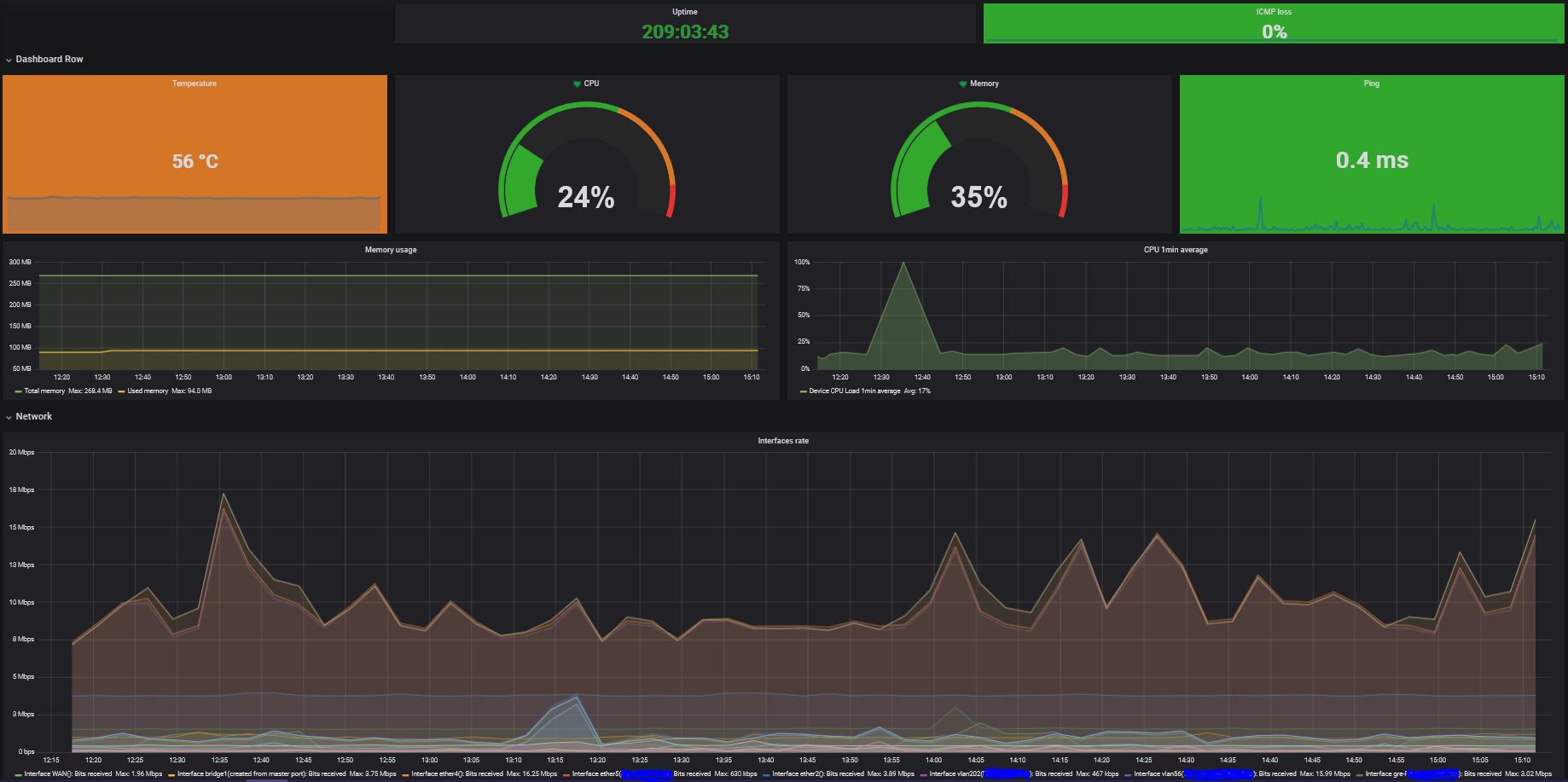 Dashboard to monitor all important Mikrotik parameters (incl. active interfaces).