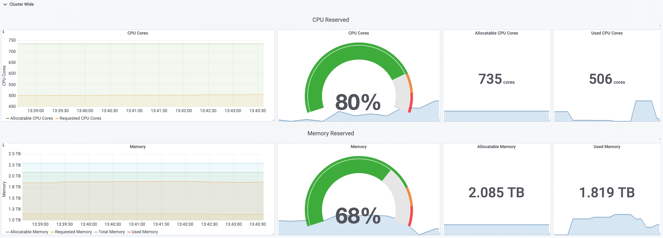 - Allocatable vs Usage Memory and CPU of all Nodes.