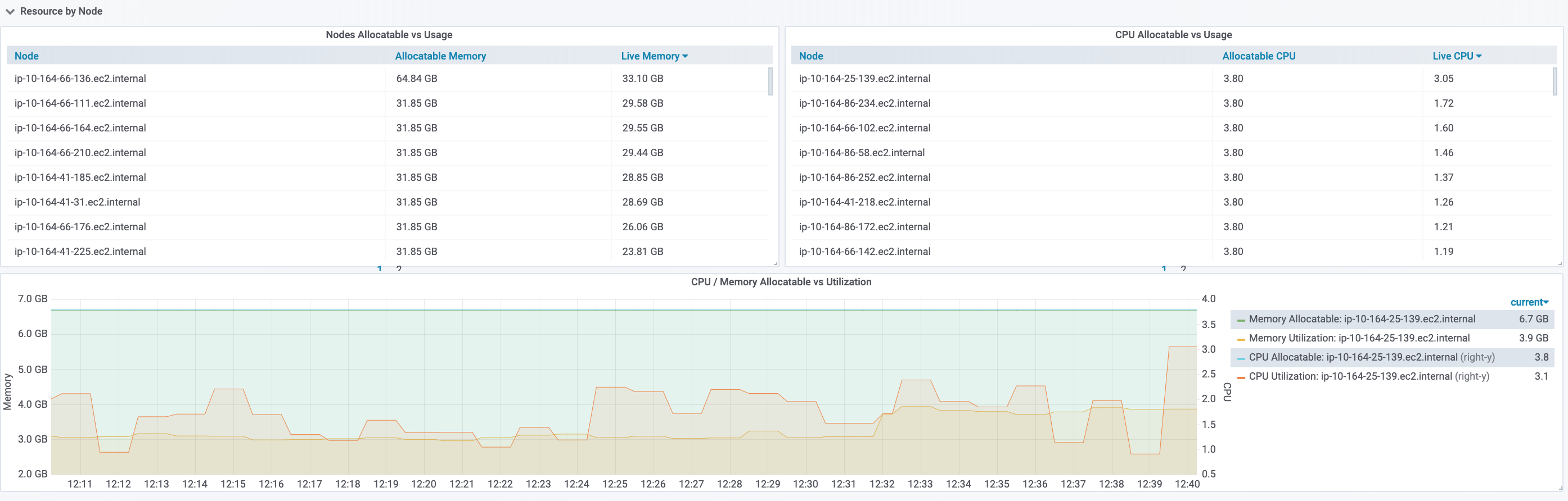 - Allocatable vs Usage Memory and CPU of a single Node.