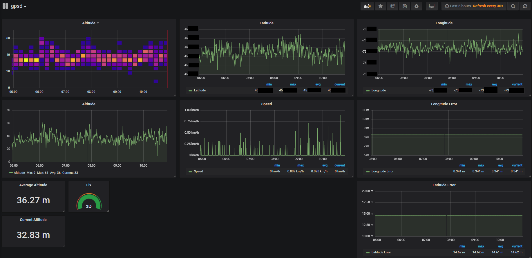 This dashboard will display influxdb data from gpsd. Full description here: https://github.com/mzac/gpsd-influx