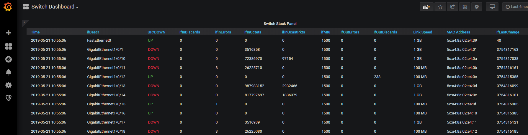 Cisco 2960X Example / Influx DB Database