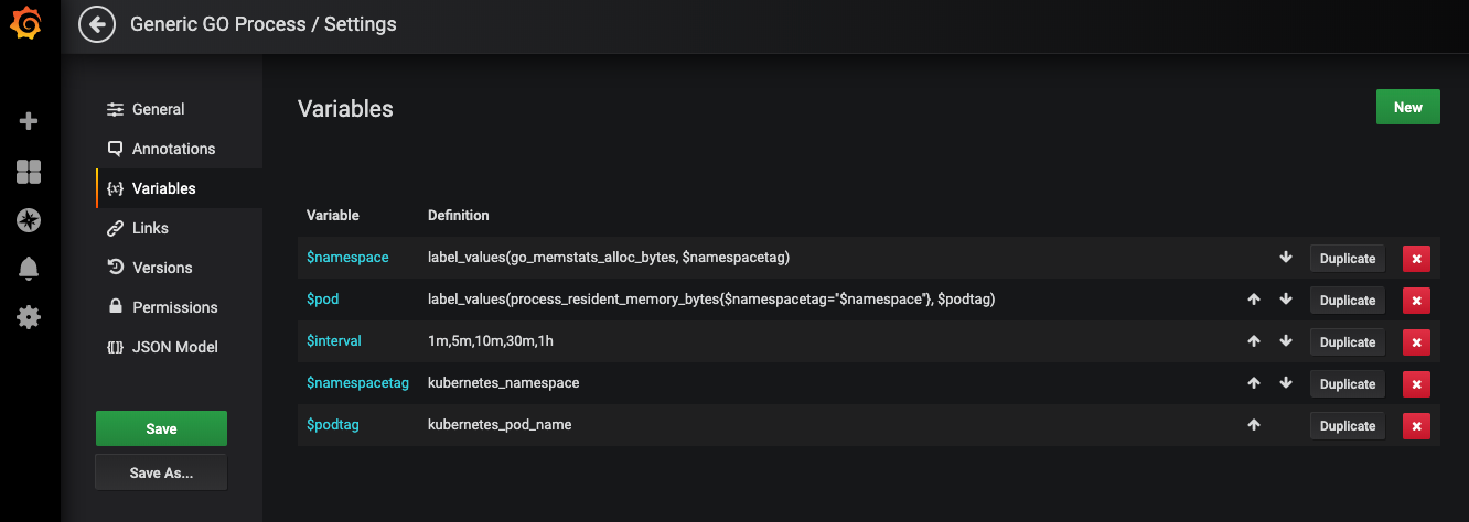 This is a slightly enhanced version of dashboard 6671 that supports variables for matching the metric namespace and pod tag names. This makes it easier to reuse the dashboard in different environments and scrape label configurations.