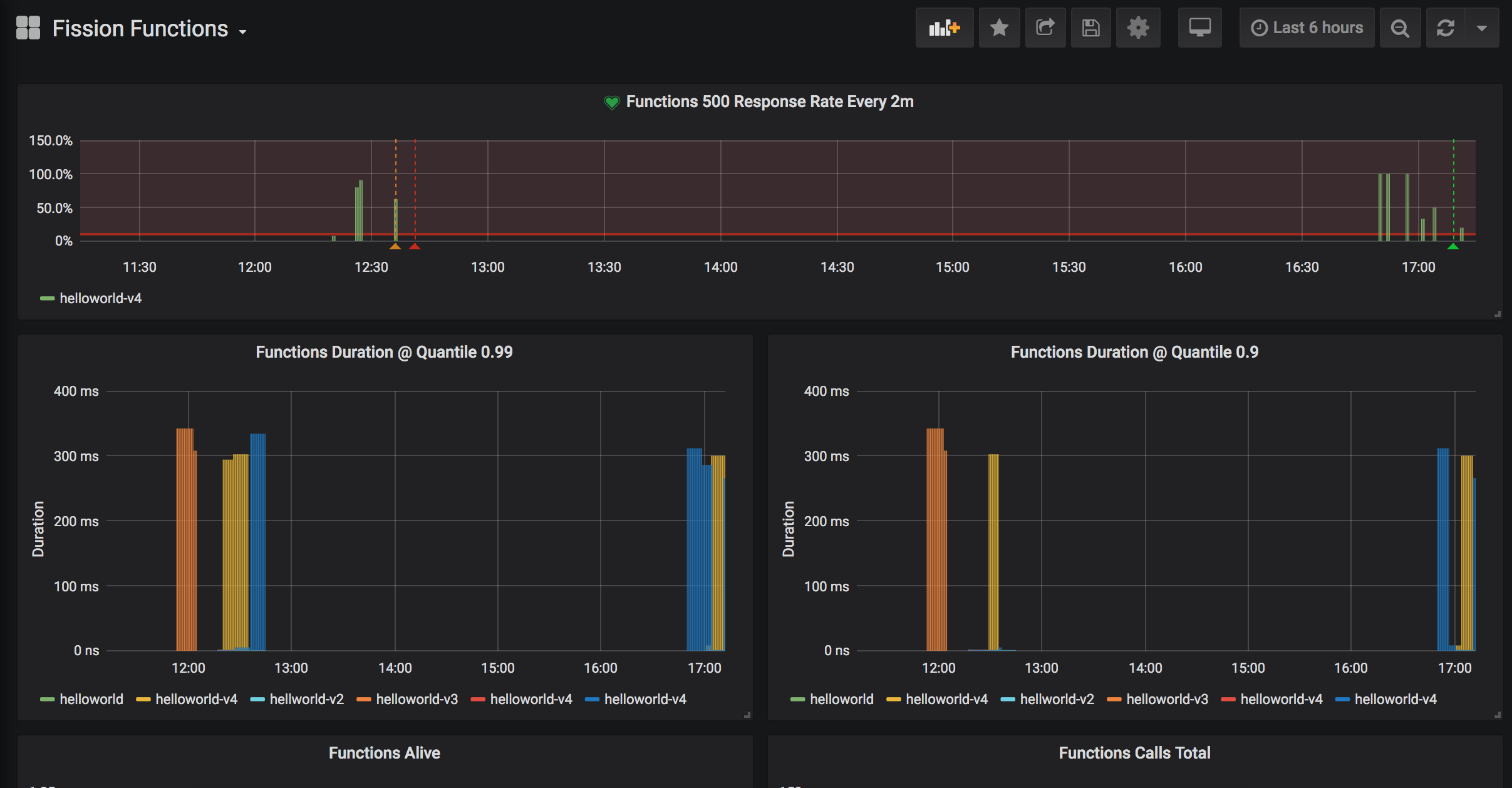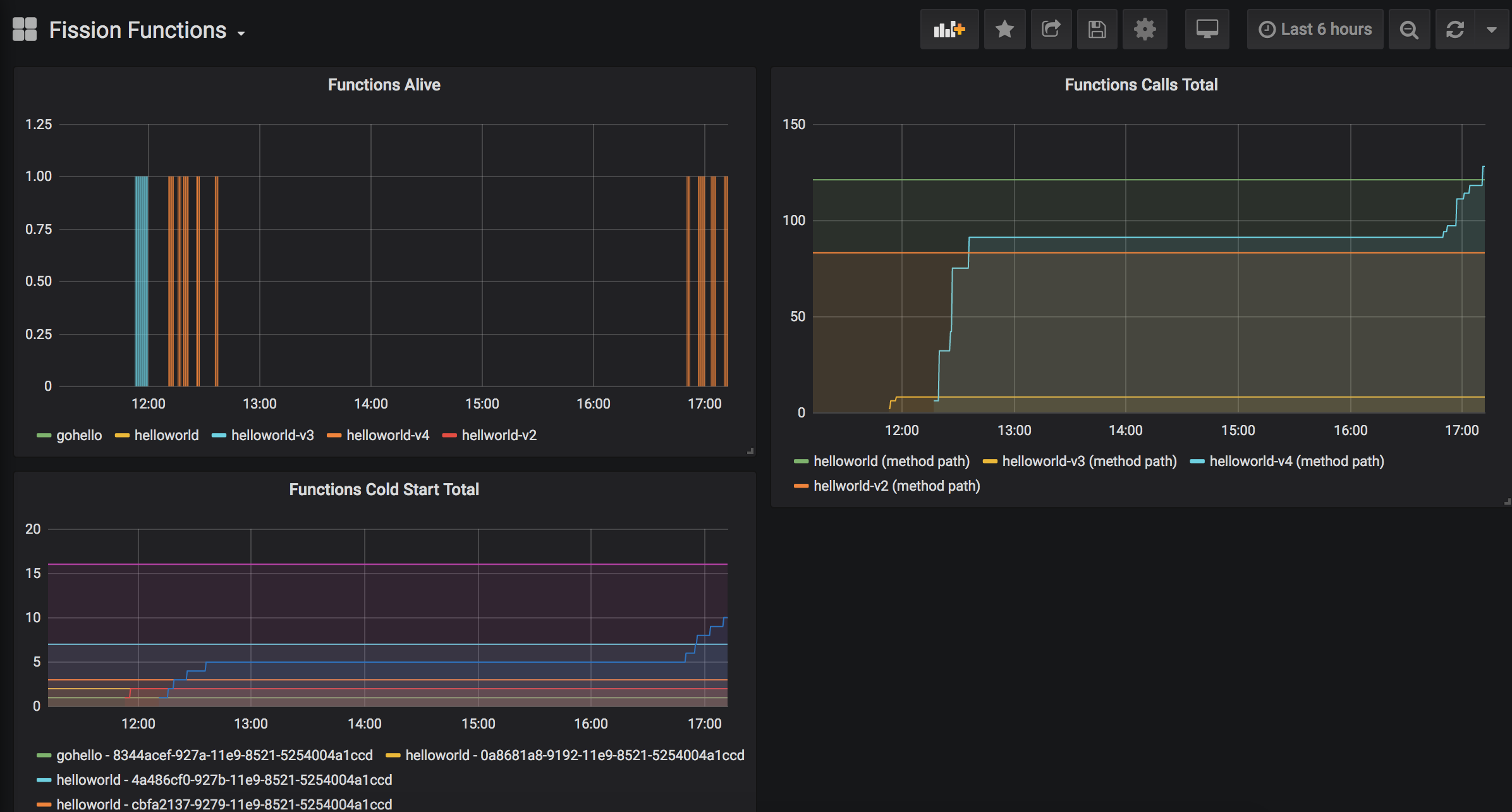 The Fission Functions dashboard uses the data source to create a Grafana dashboard with the graph panel.