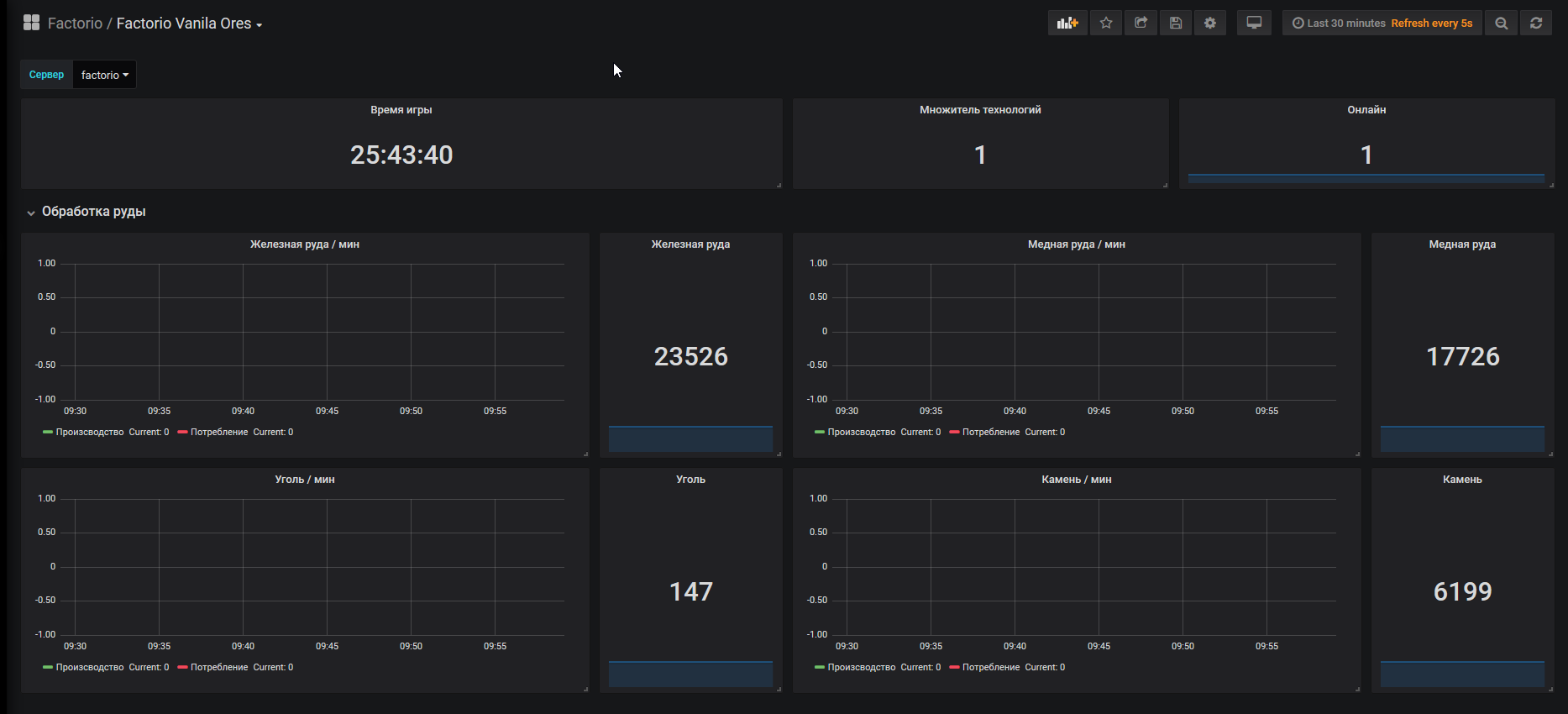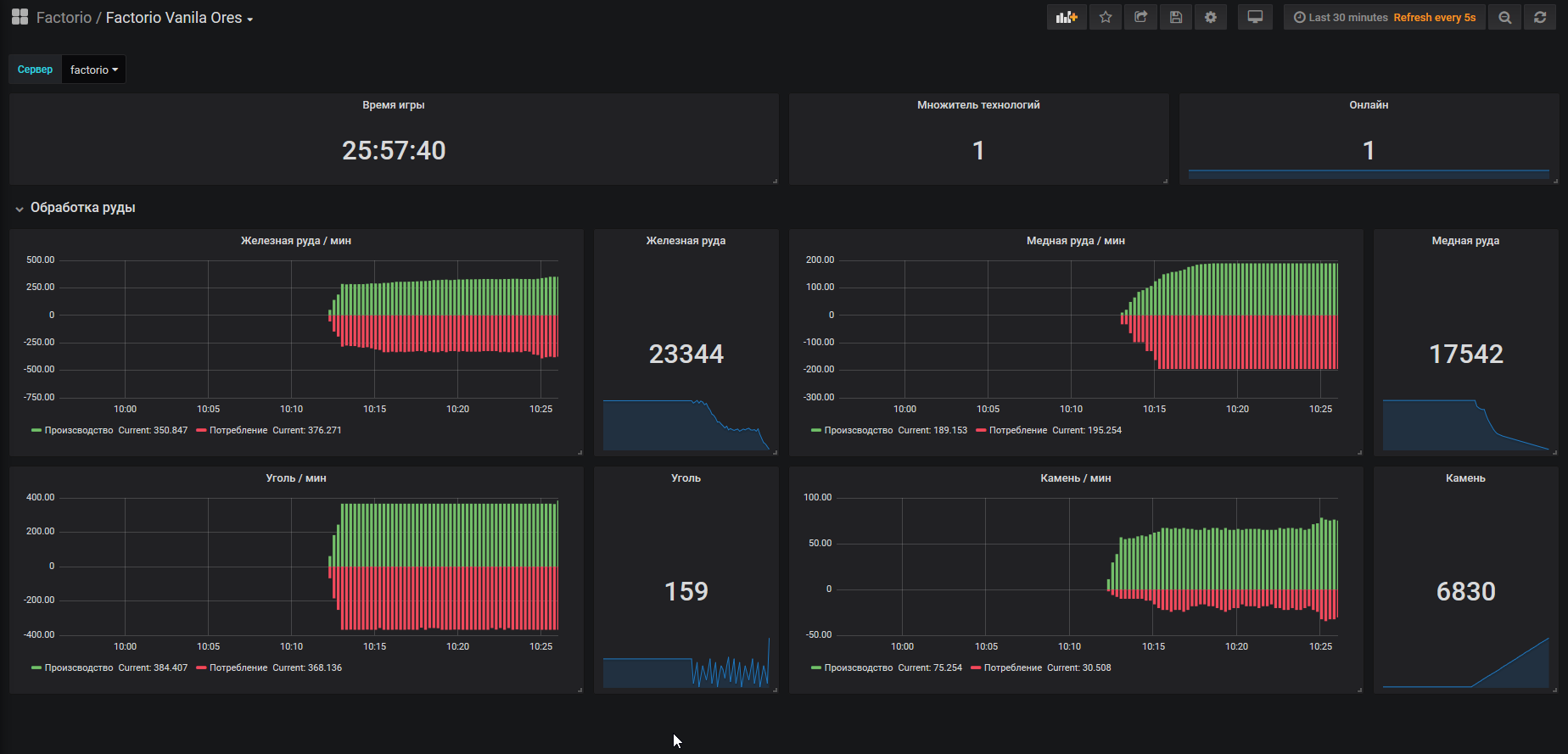 Visualization of metrics for the game Factorio