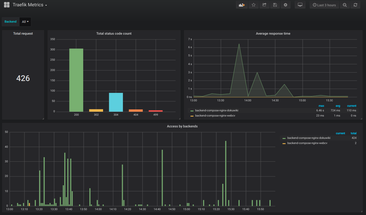 Dashboard for traefik metrics with Influxdb HTTP data source.