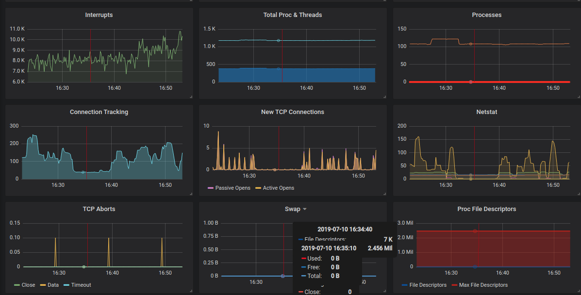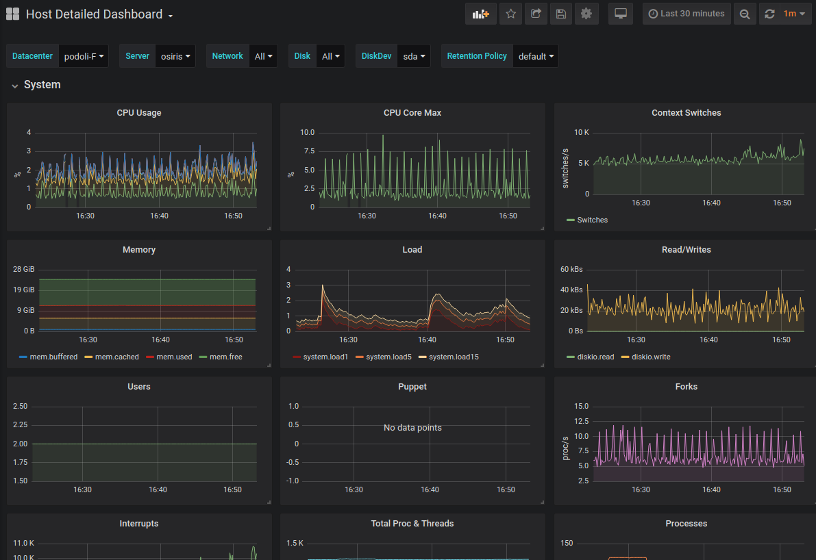 Very detailed host dashboard. It shows stats for Disk, Kernel, Network and process stuff. Used every day for debugging purposes.