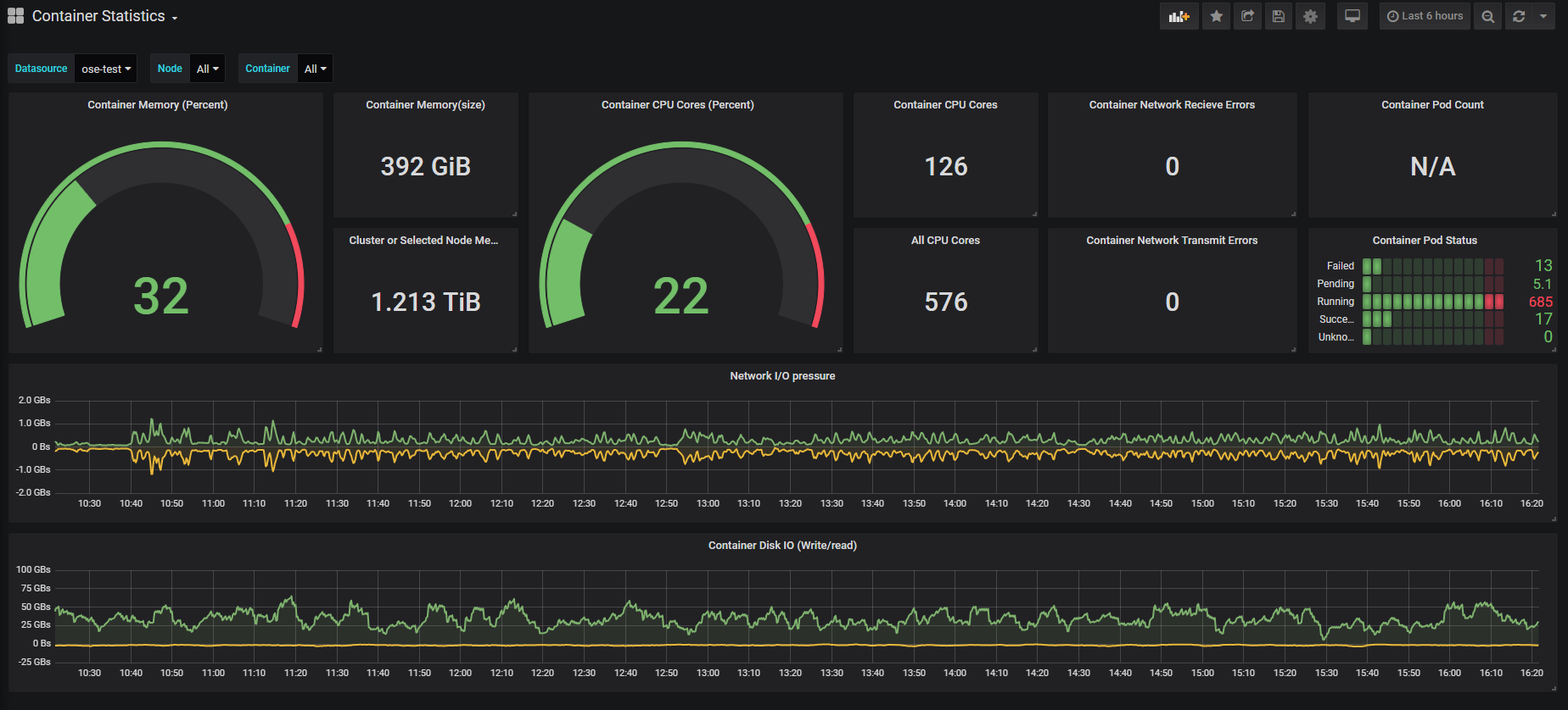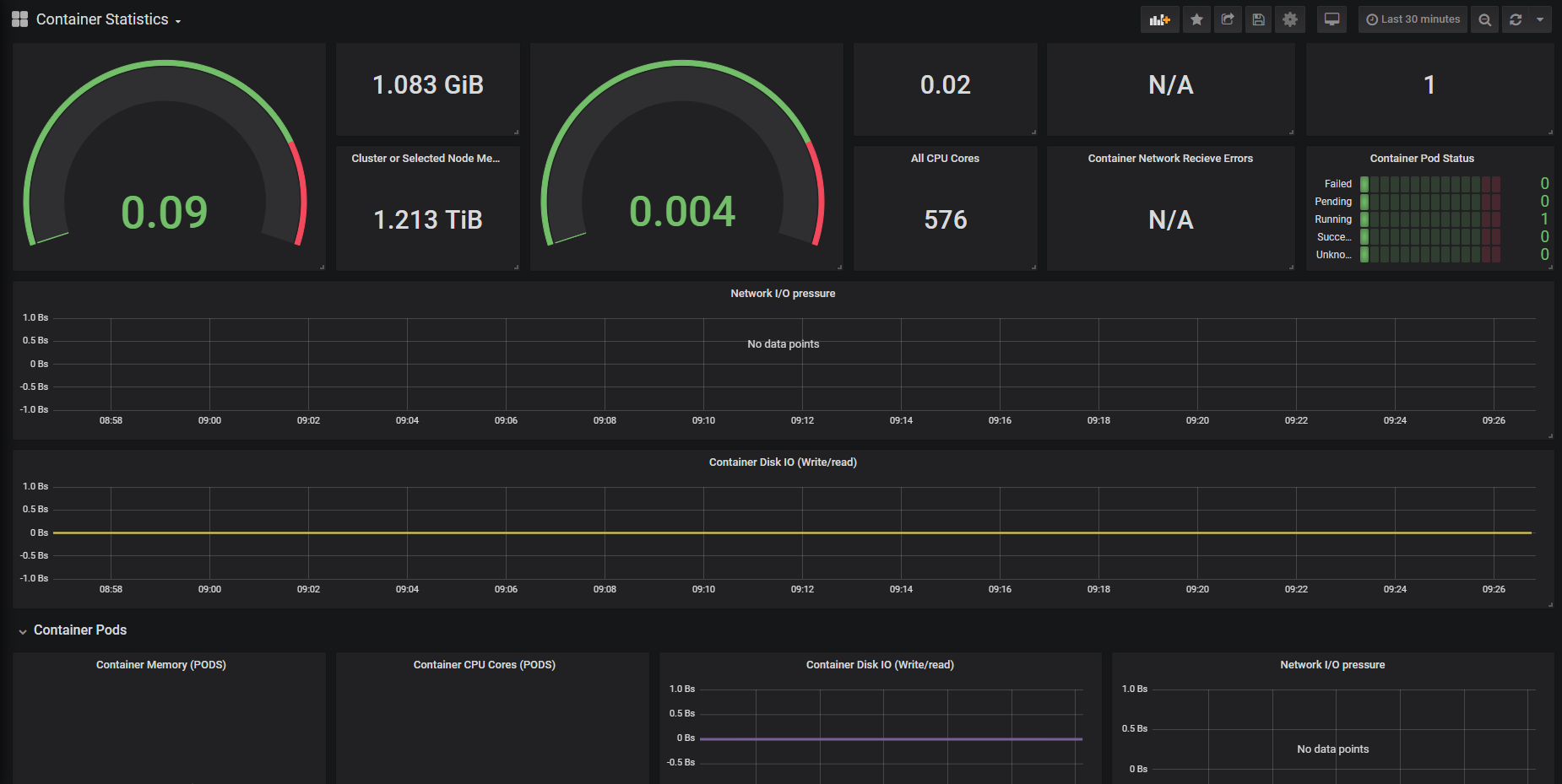 Dashboard to show container statistics with pod data of each container