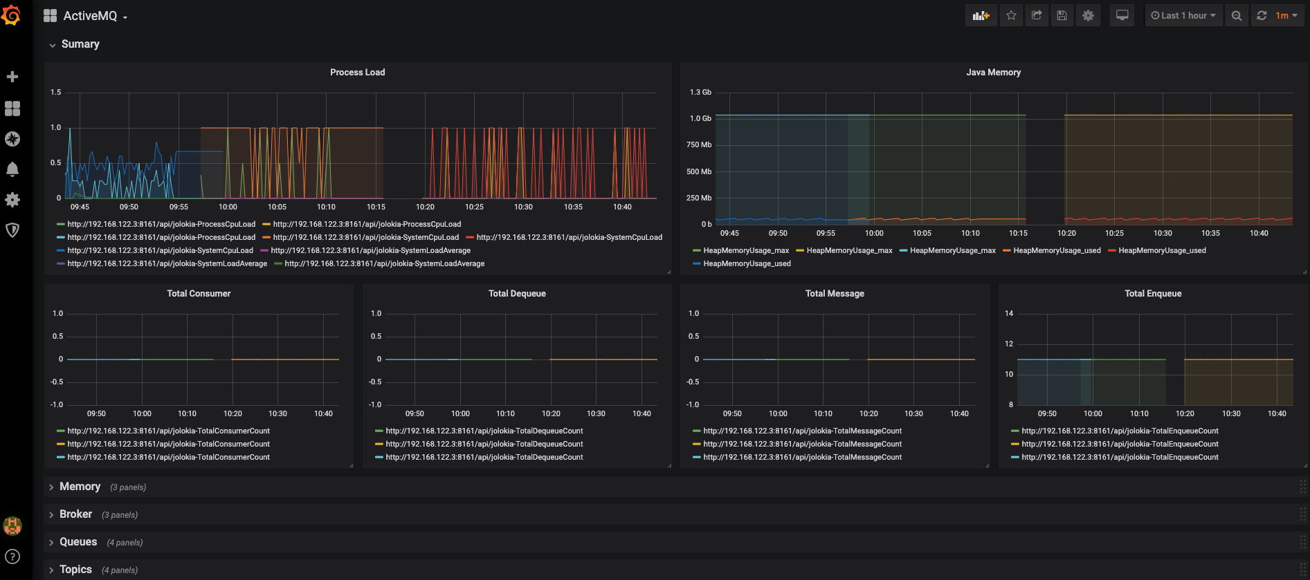 [[inputs.jolokia2_agent.metric]] name = "queue" mbean = "org.apache.activemq:brokerName=,destinationName=,destinationType=Queue,type=Broker" paths = ["QueueSize","EnqueueCount","ConsumerCount","DispatchCount","DequeueCount","ProducerCount","InFlightCount"] tag_keys = ["brokerName","destinationName"]