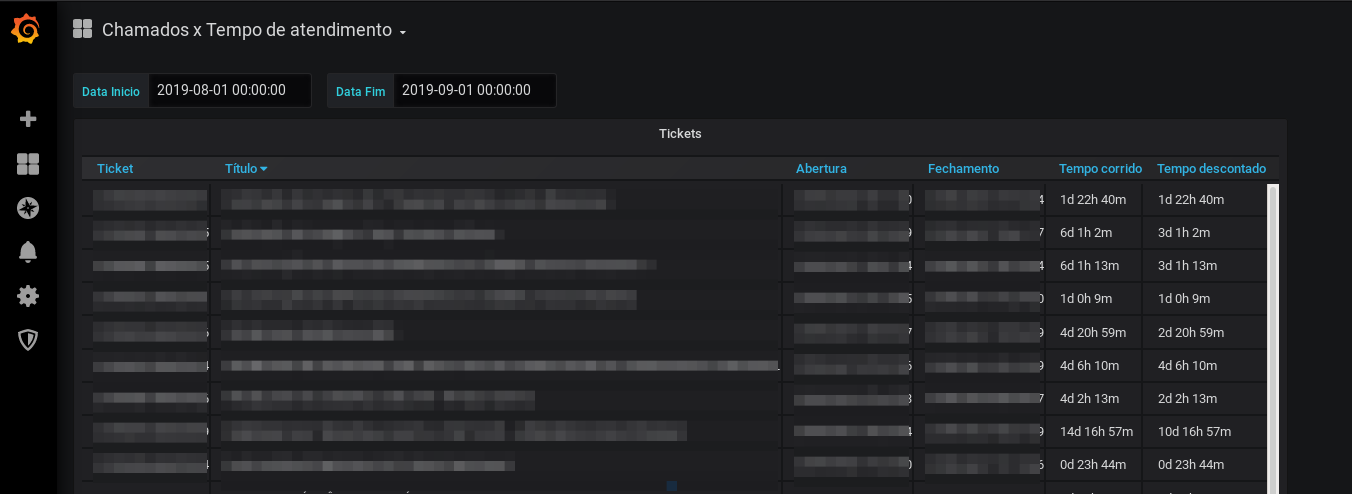 Relação de chamados fechados e tempo de solução no sistema OTRS