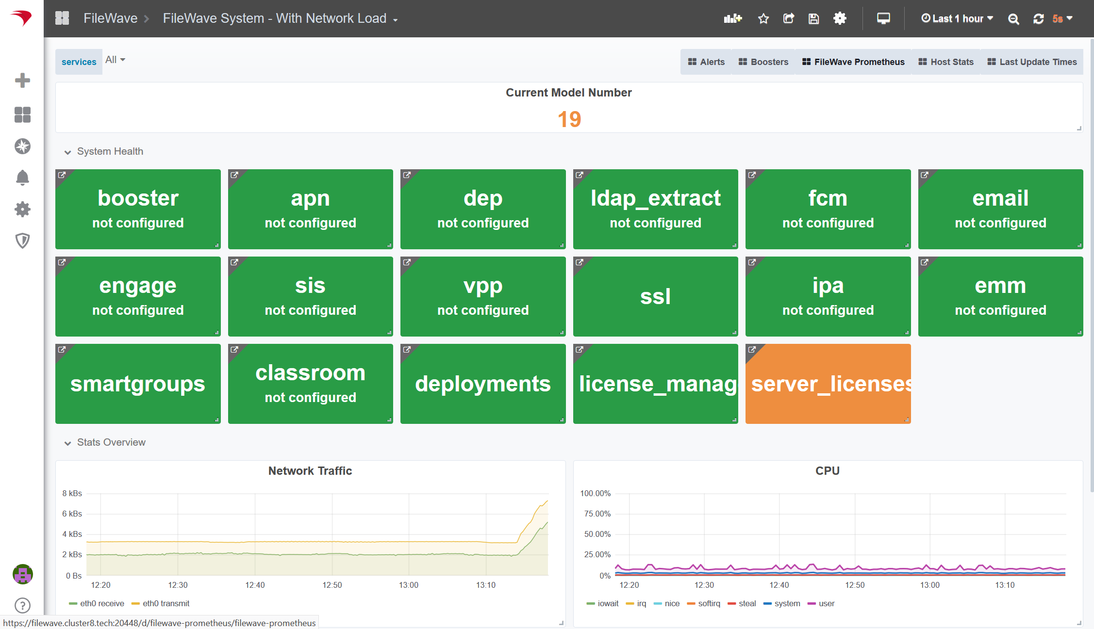 This shows the overall system configuration state, as well as simple networking, CPU and memory utilization. You can customize what status boxes are shown using the multi-select control.