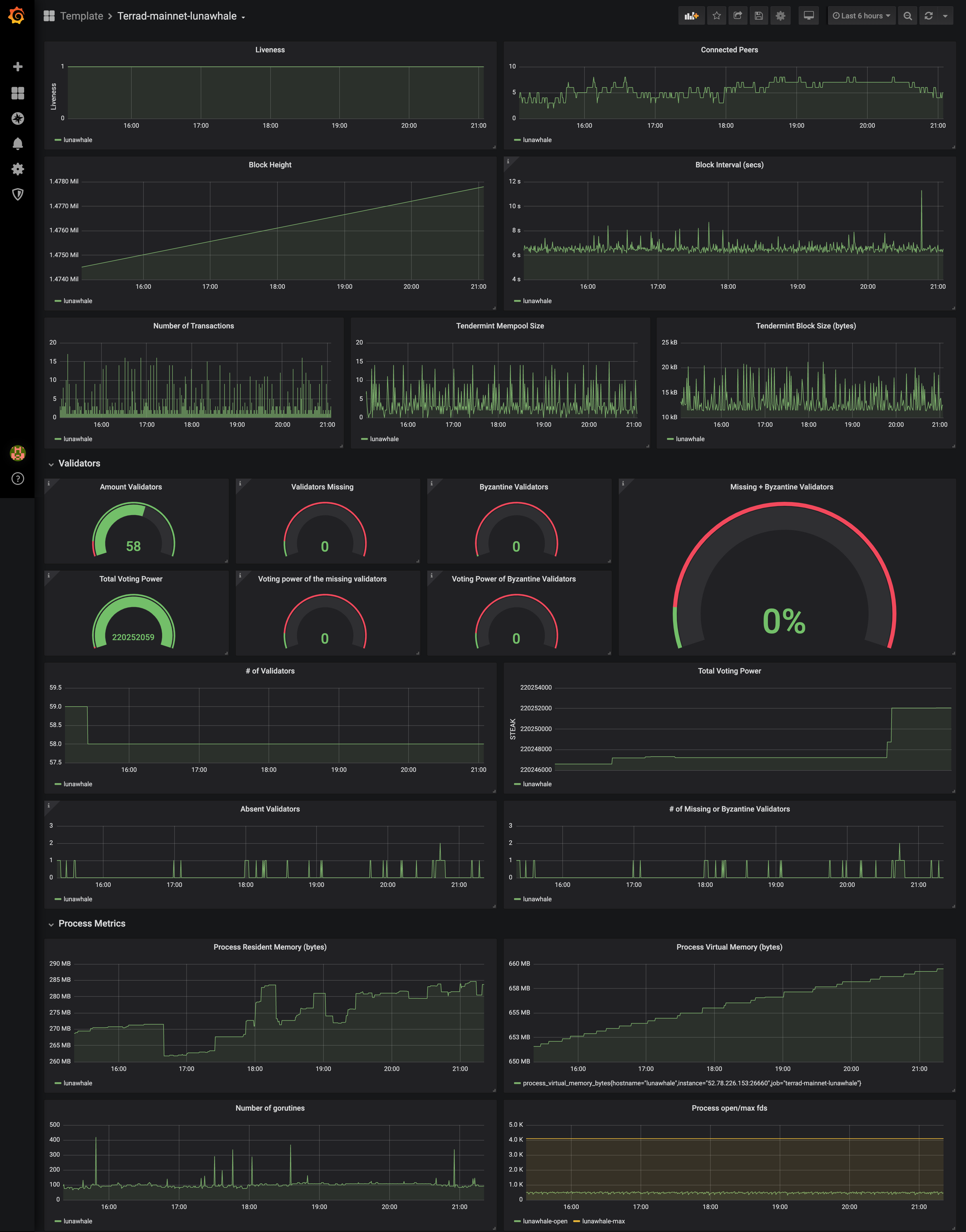 This is a simple Terra blockchain dashboard used to monitor Terra nodes using Prometheus metrics exported by terrad.