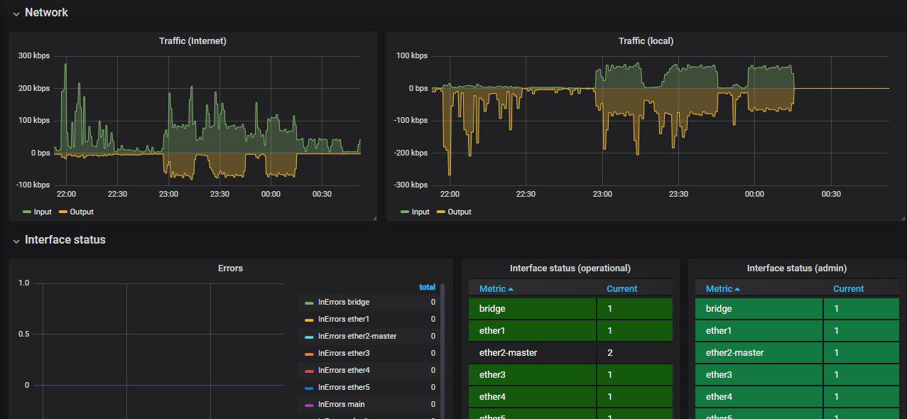 Mikrotik RouterOS metrics from Prometheus collected with mikrotik_exporter.