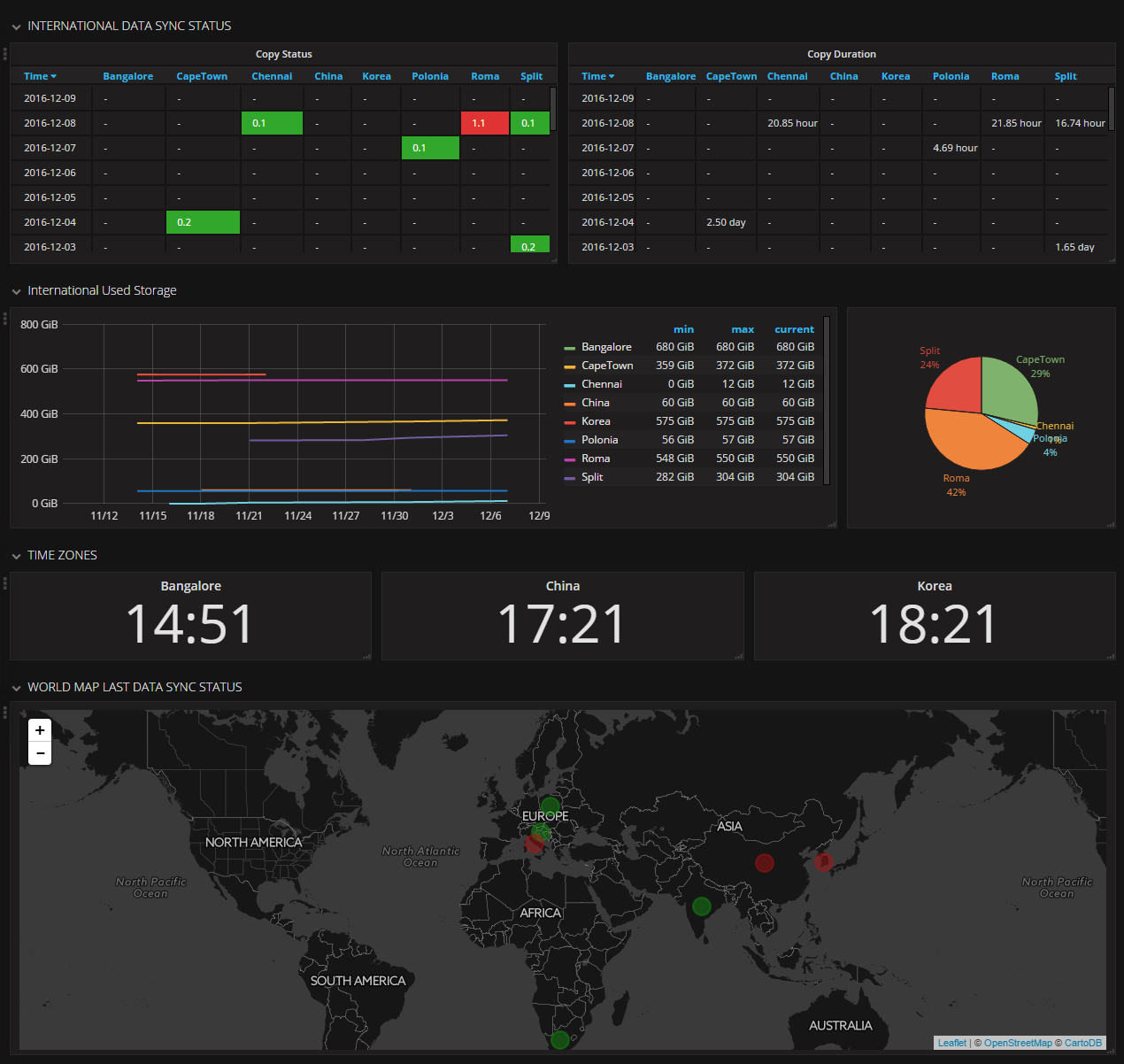 Status, duration and size of remote backups