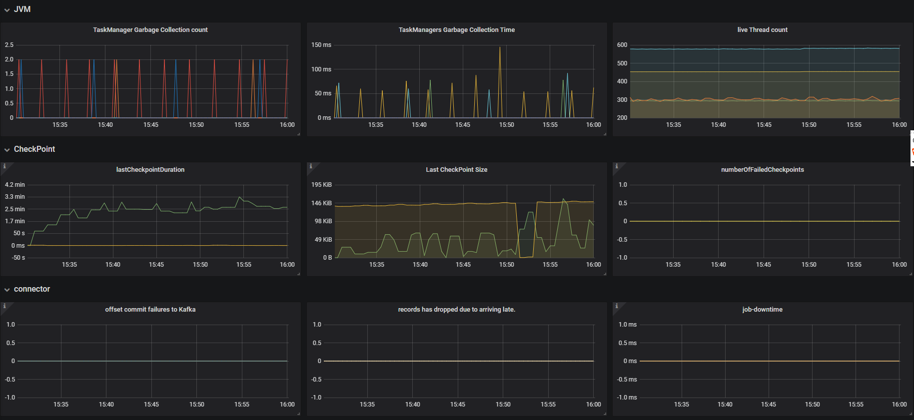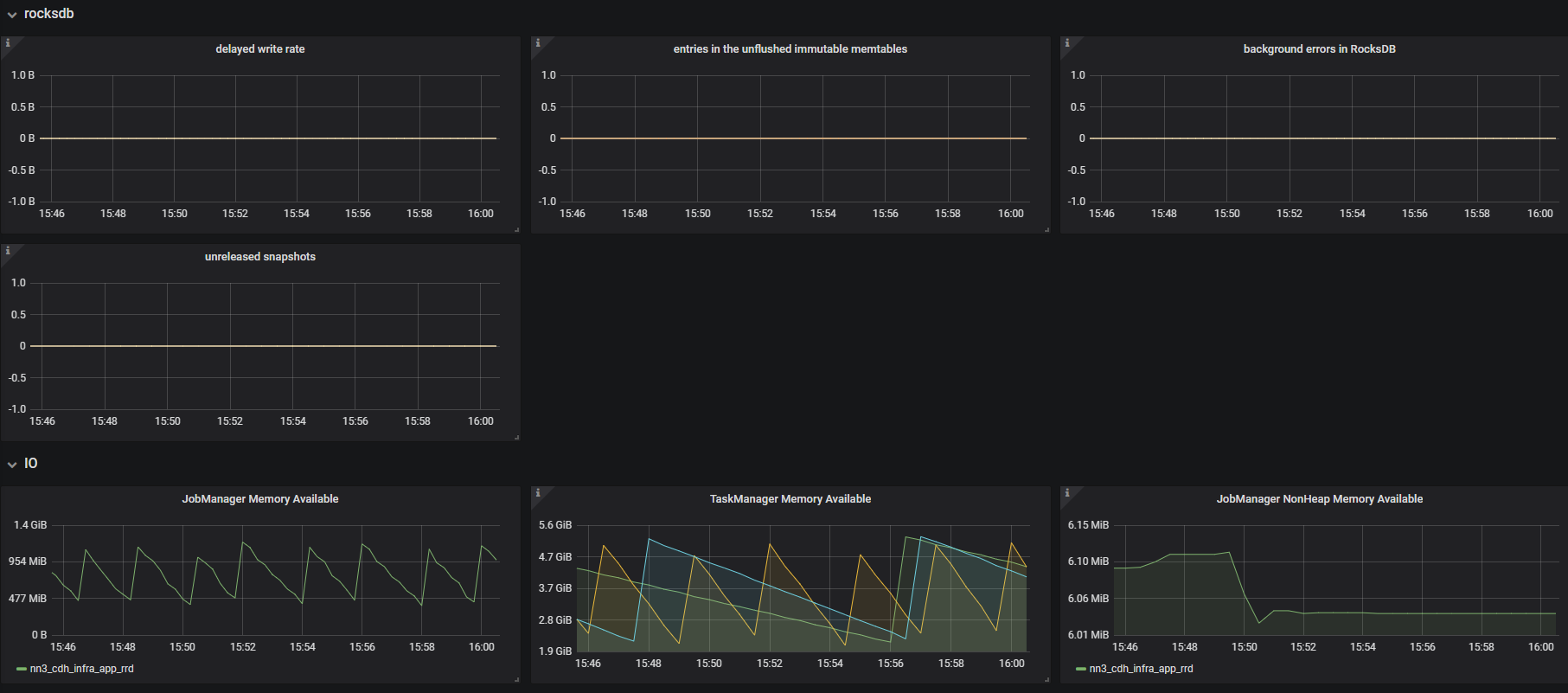 #metrics setting metrics.reporter.prom.class: org.apache.flink.metrics.prometheus.PrometheusReporter metrics.reporter.prom.port: 9251 metrics.system-resource: true metrics.system-resource-probing-interval: 5000 metrics.latency.interval: 5000 state.backend.rocksdb.metrics.actual-delayed-write-rate: true state.backend.rocksdb.metrics.background-errors: true state.backend.rocksdb.metrics.num-deletes-imm-mem-tables: true state.backend.rocksdb.metrics.num-entries-imm-mem-tables: true state.backend.rocksdb.metrics.num-snapshots: true #rocksdb state.backend: rocksdb fs.hdfs.hadoopconf: /etc/hadoop/conf state.checkpoints.dir: hdfs://nameservice1/flink1.9-checkpoints state.savepoints.dir: hdfs://nameservice1/flink1.9-savepoints state.backend.incremental: true