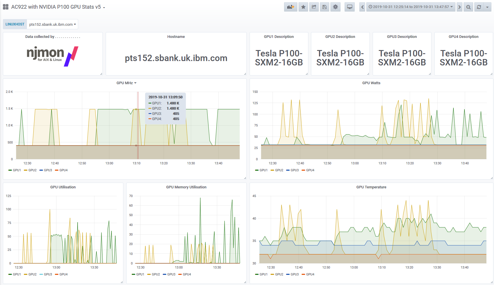 njmon AC922 with NVIDIA P100 GPU Stats v6