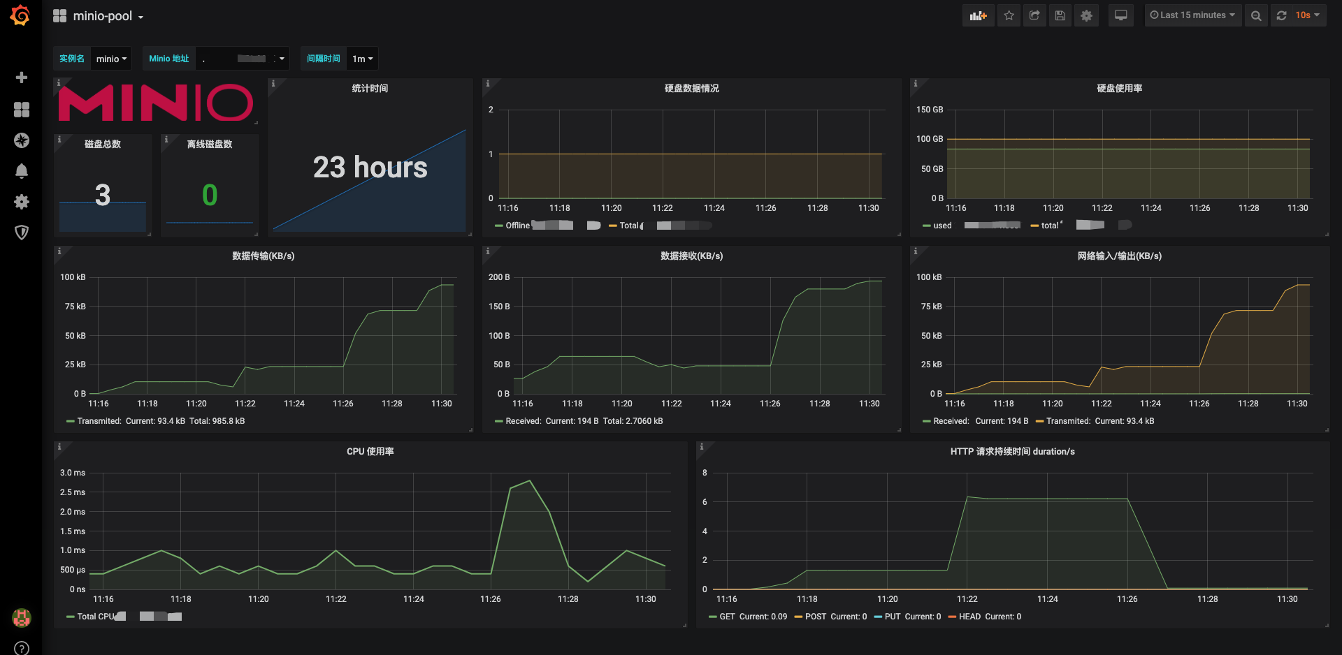 Minio 监控面板(中文版,支持多个机器监控) 主要监控信息