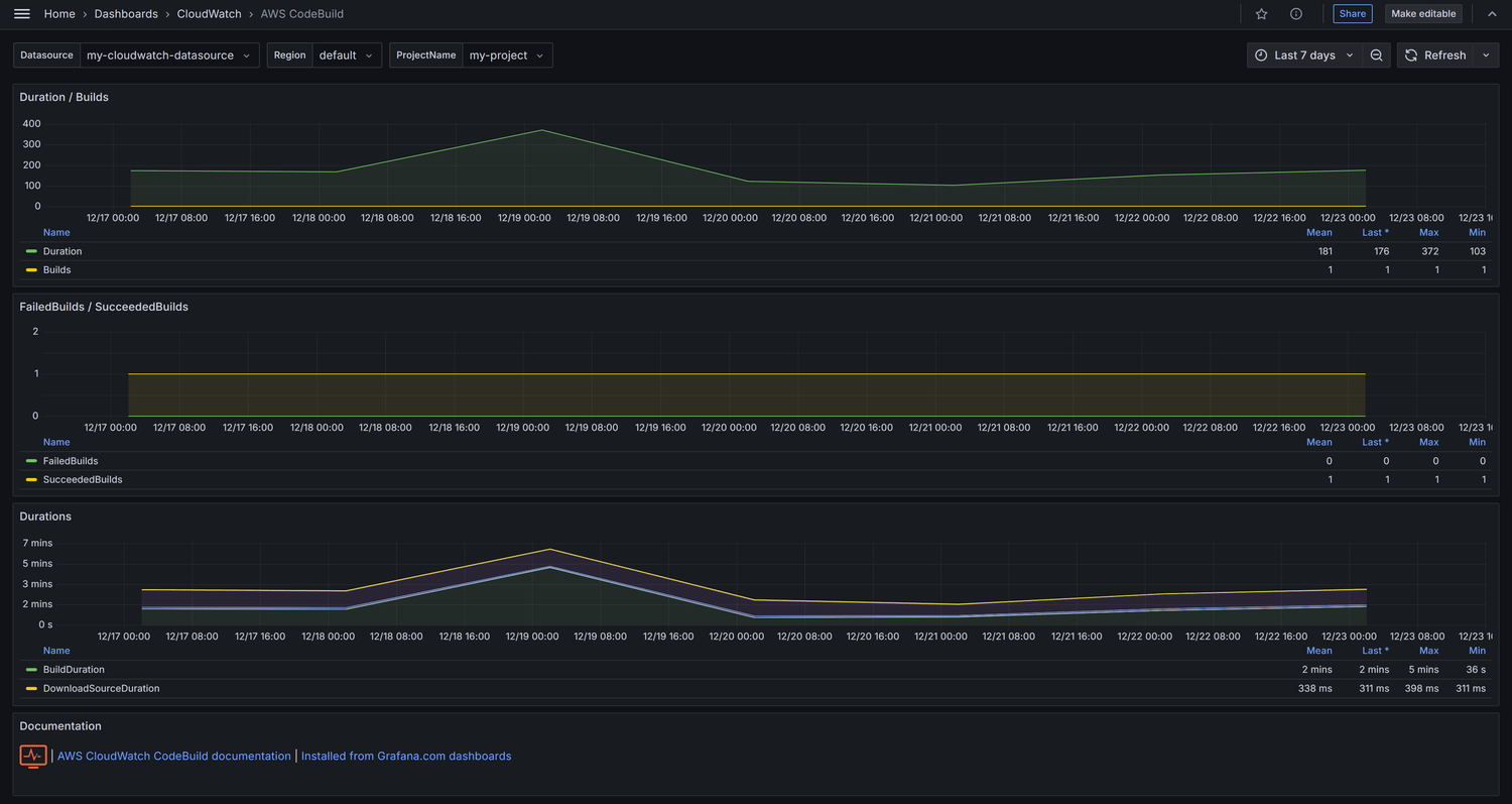 Visualize AWS CodeBuild metrics.