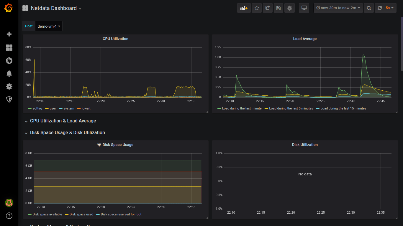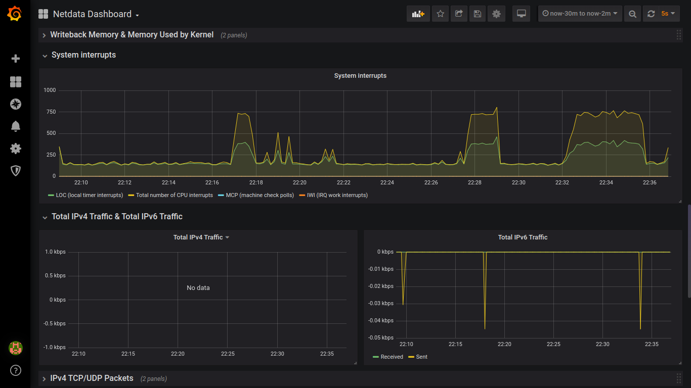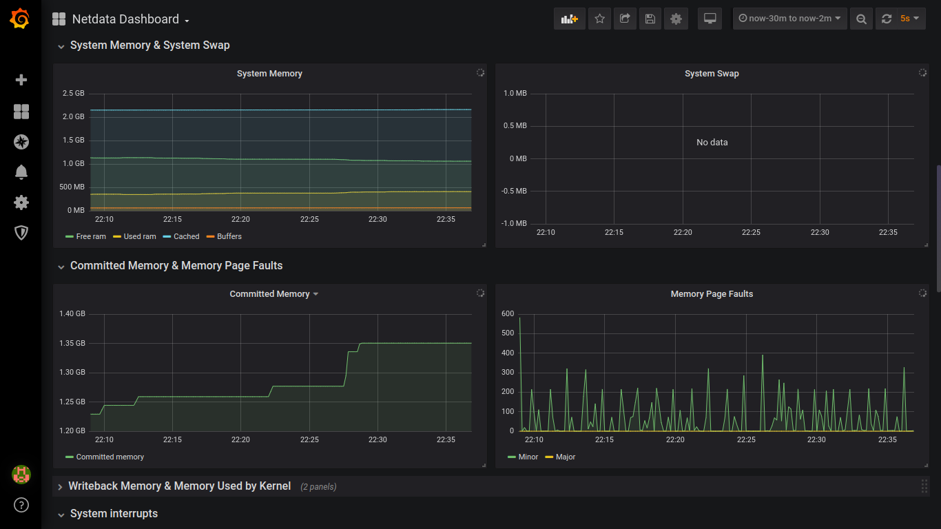Linux system real-time monitoring dashboard. Generated by Netdata and store at InfluxDB