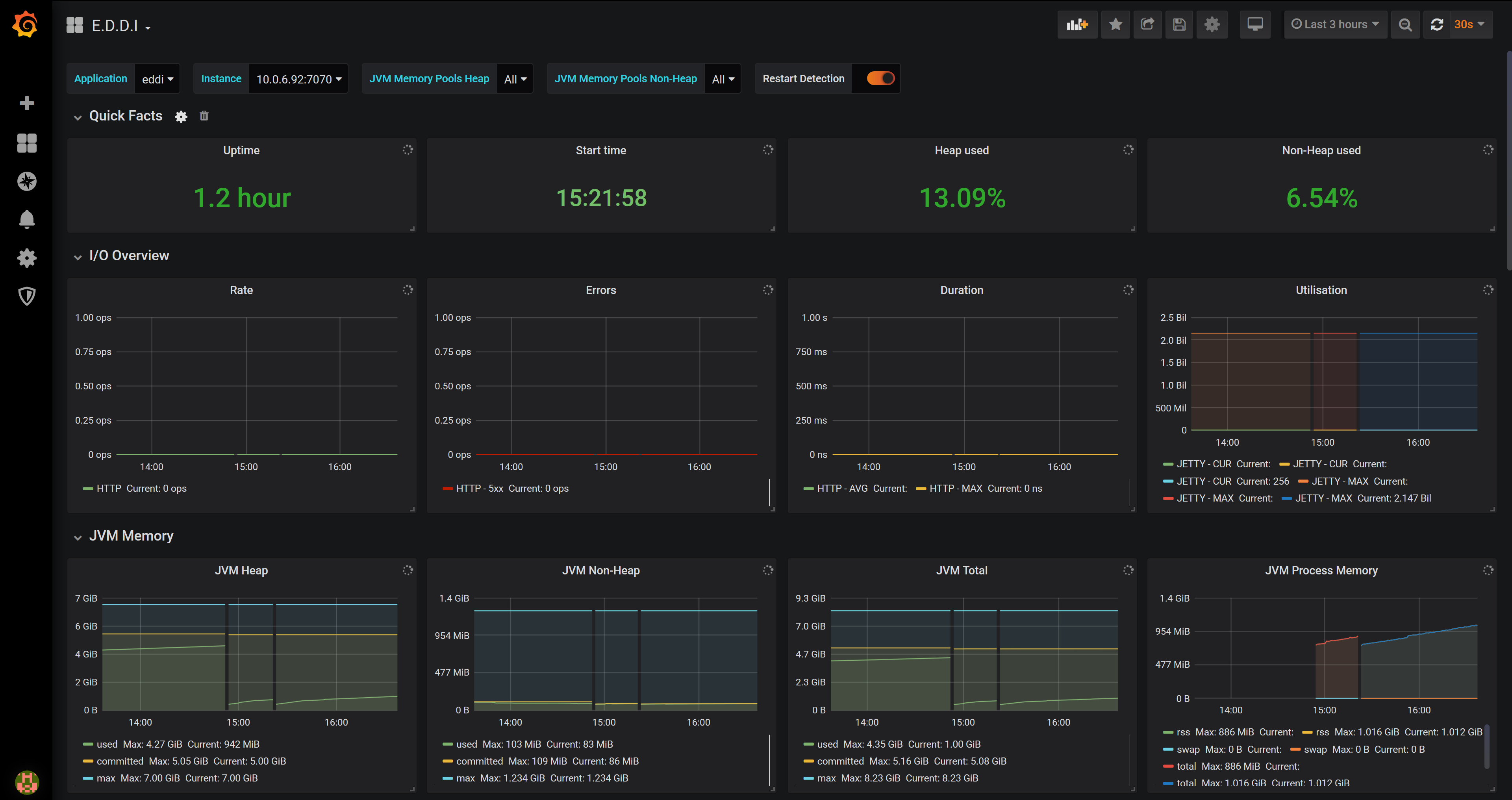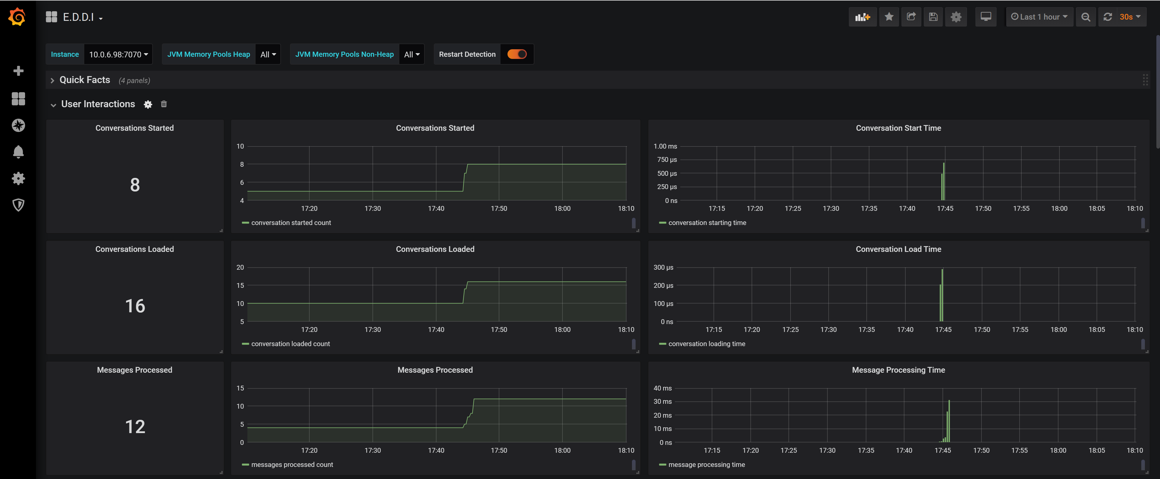This dashboard maps metrics being retrieved from eddi-instance:port/monitoring/prometheus