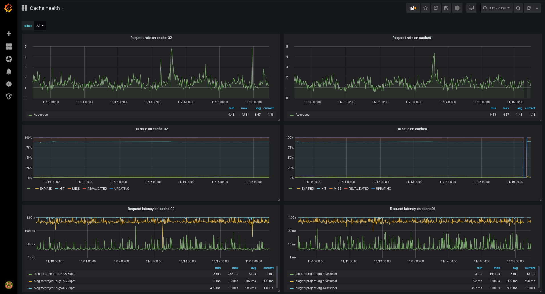 A panel to extract graphs from Prometheus data collected from mtail parsing of custom Nginx logs with hit ratio.