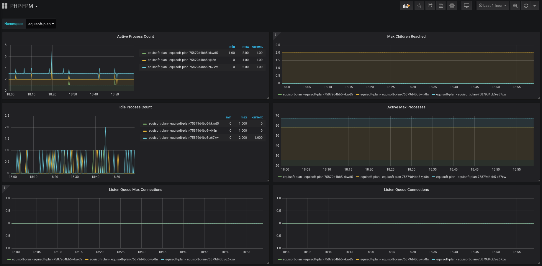This dashboard is to be used with https://github.com/bakins/php-fpm-exporter and inside a Kubernetes cluster.