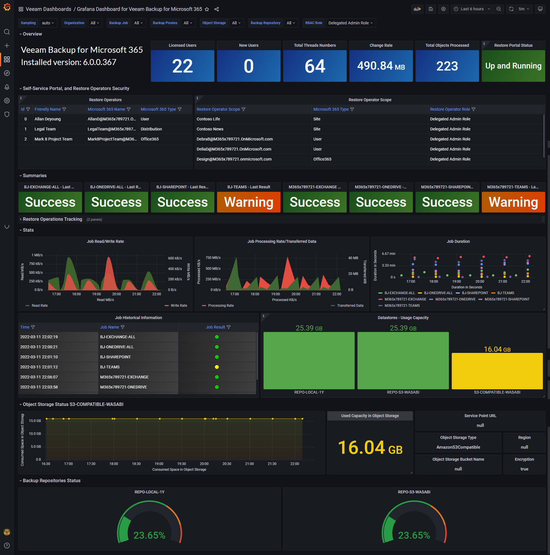 Grafana Dashboard for Veeam Backup for Microsoft 365 screenshot 1