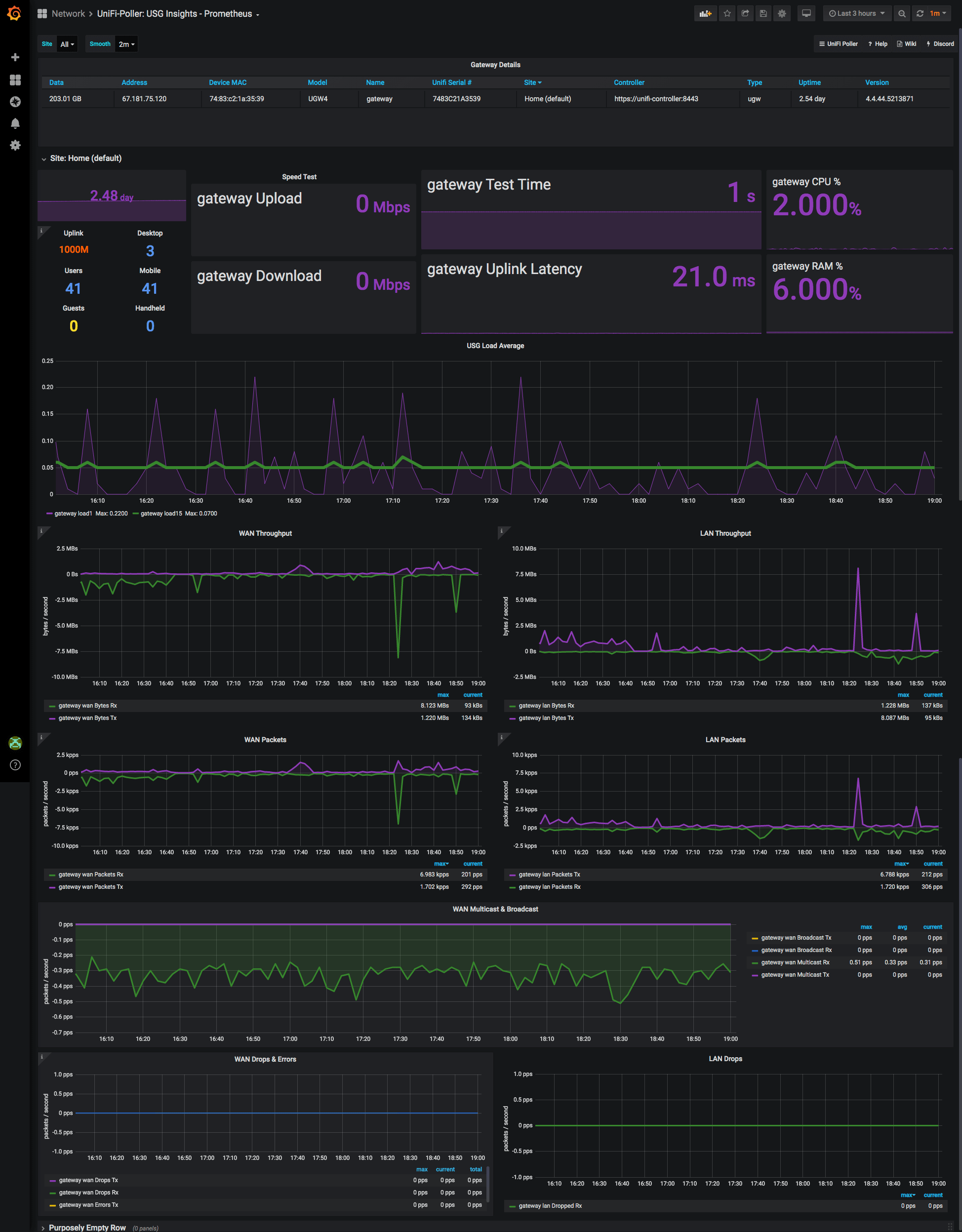 UniFi Poller v2.0.1 Displays detailed information for security gateways in a UniFi network using Prometheus.