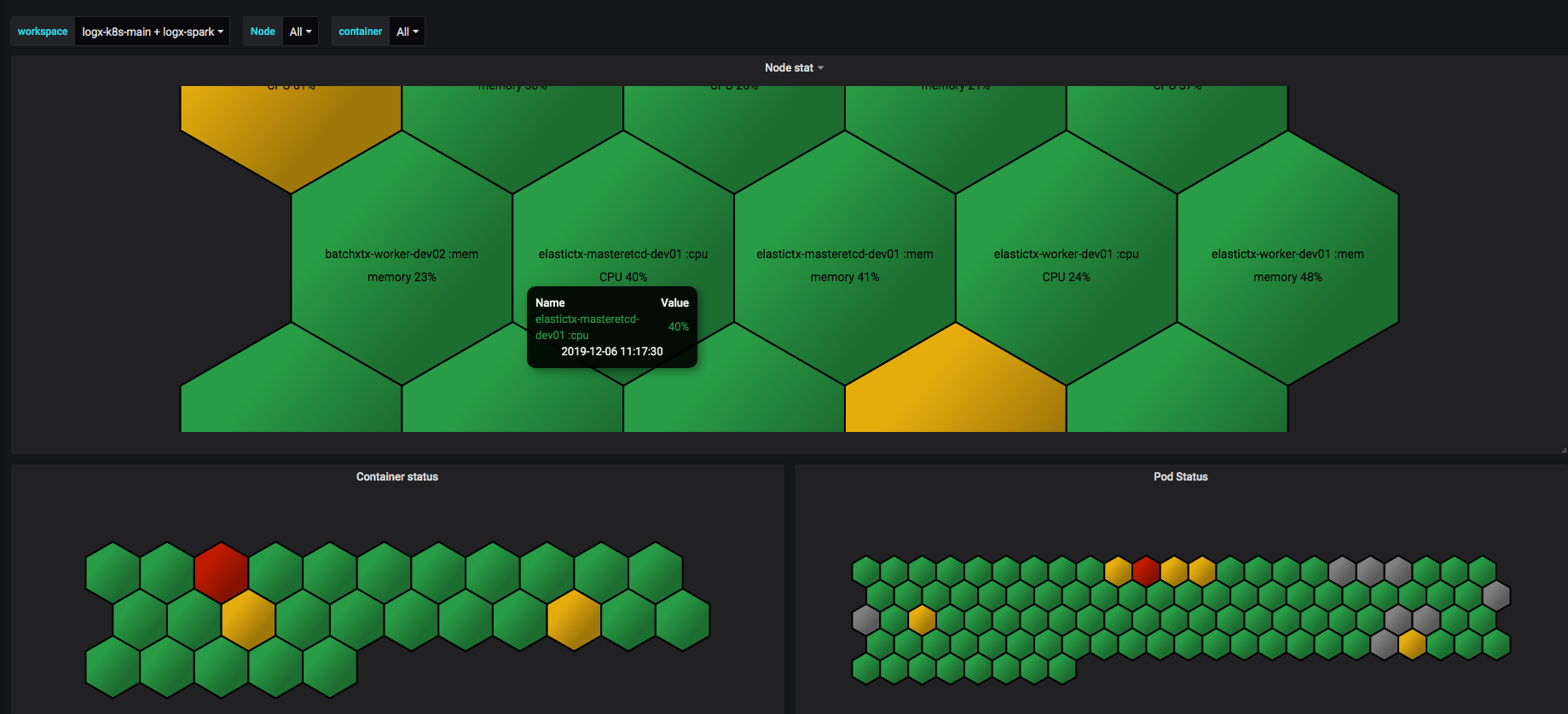 kubernetes Node, Container, pod monitoring
