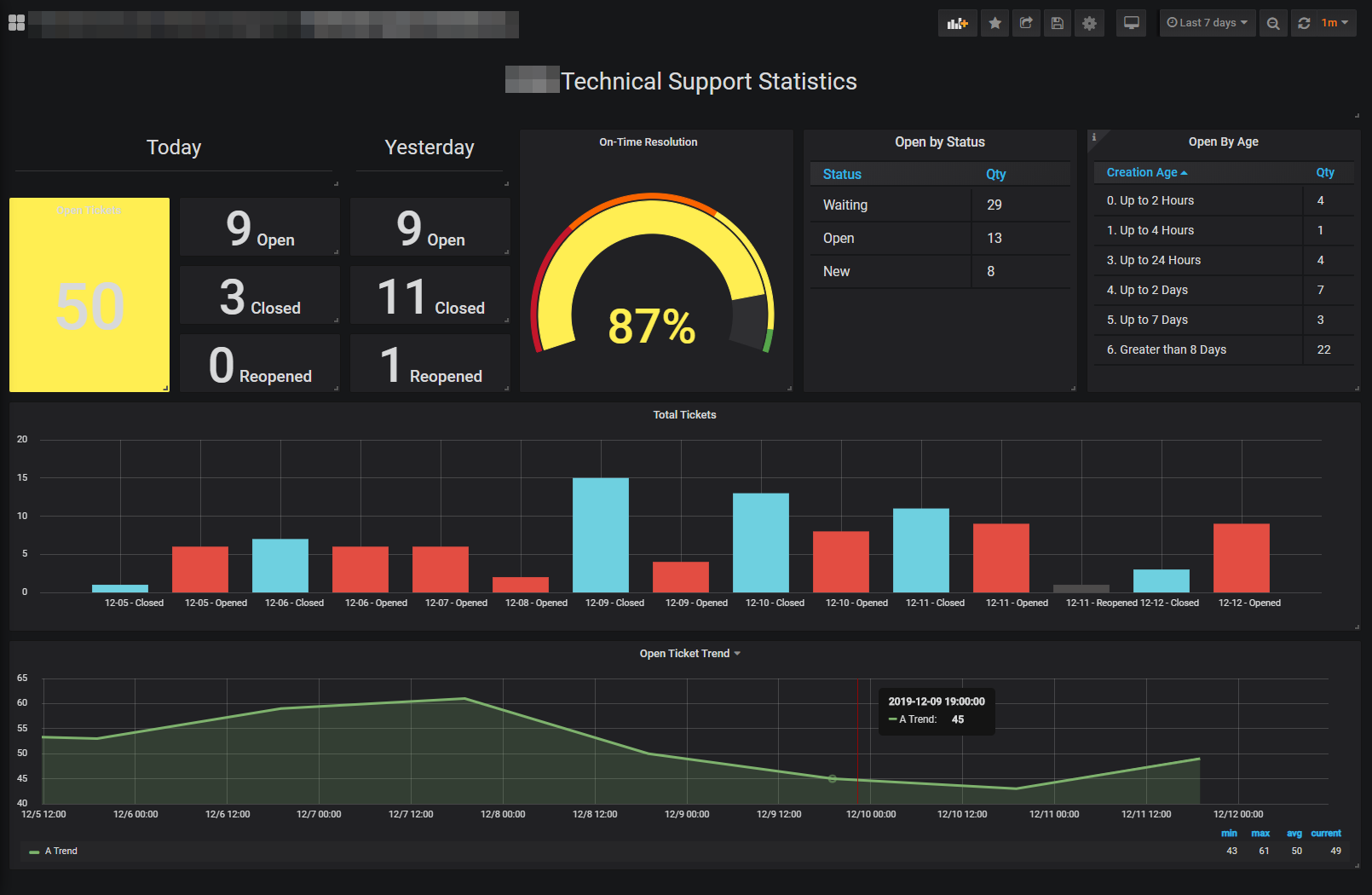 Technical Support Statistics Dashboard