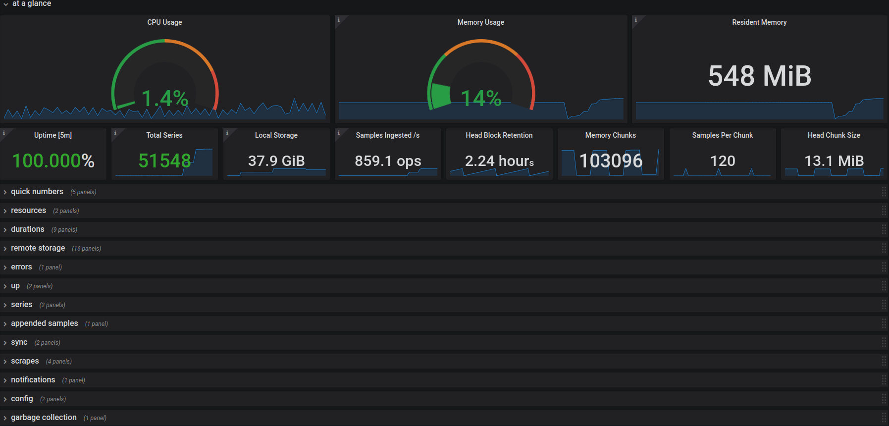 Extending the default Prometheus 2.0 dashboard with more debug-relevant metrics.