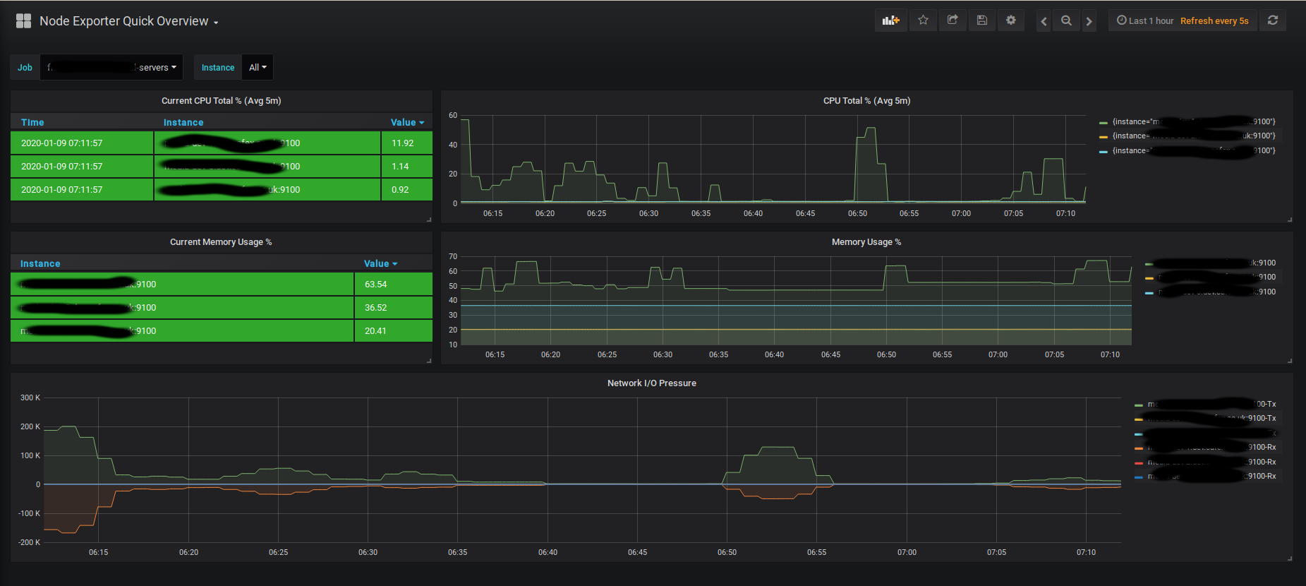 The Node Exporter Quick Overview dashboard uses the data source to create a Grafana dashboard with the panel.