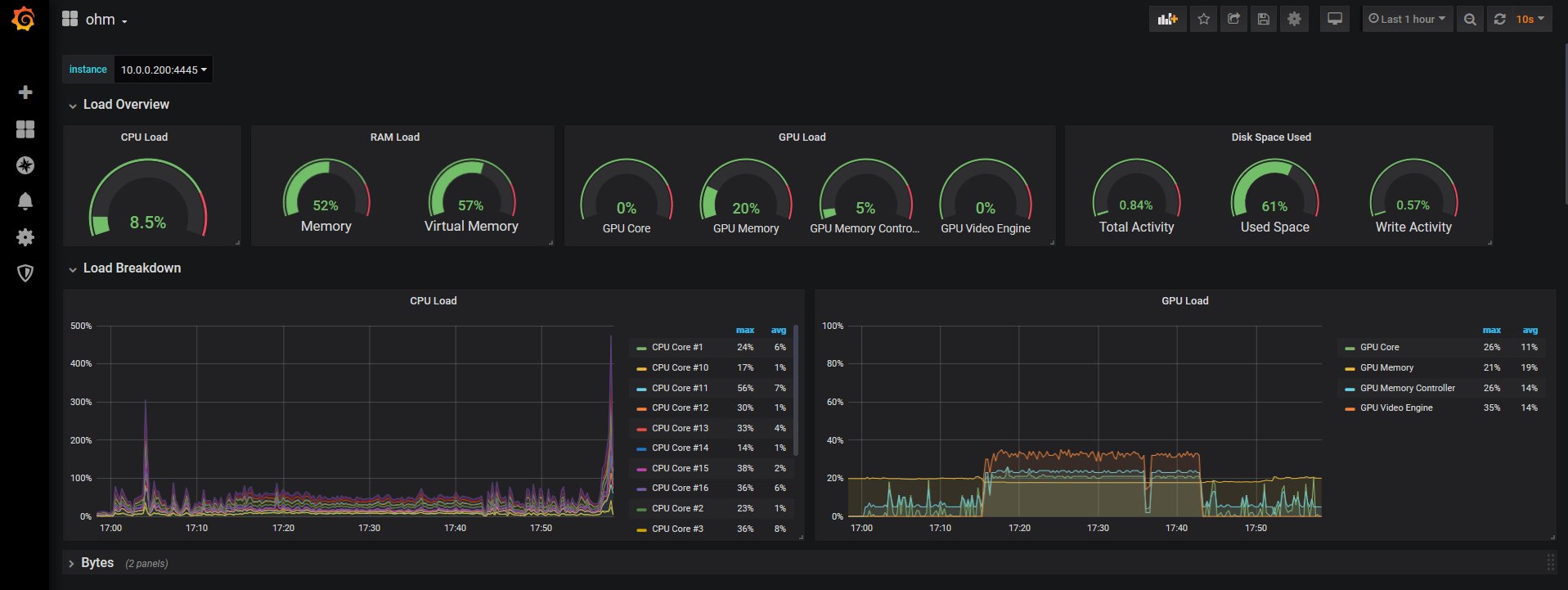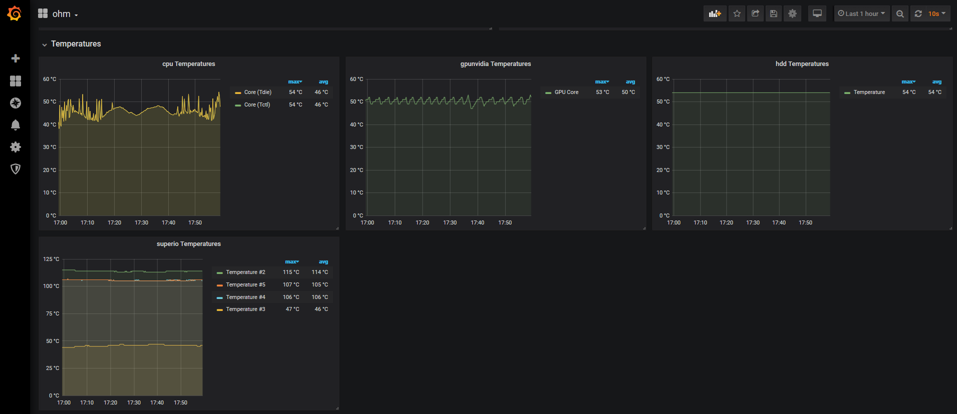 This dashboard exposes temperature, power draw, utilization, fan rpms, etc on cpu, gpu, disk, ram.