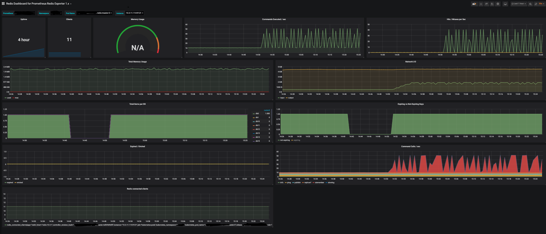 Redis Dashboard for Prometheus Redis Exporter 1.x, it works with multiple Prometheus instances and name spaces in k8s