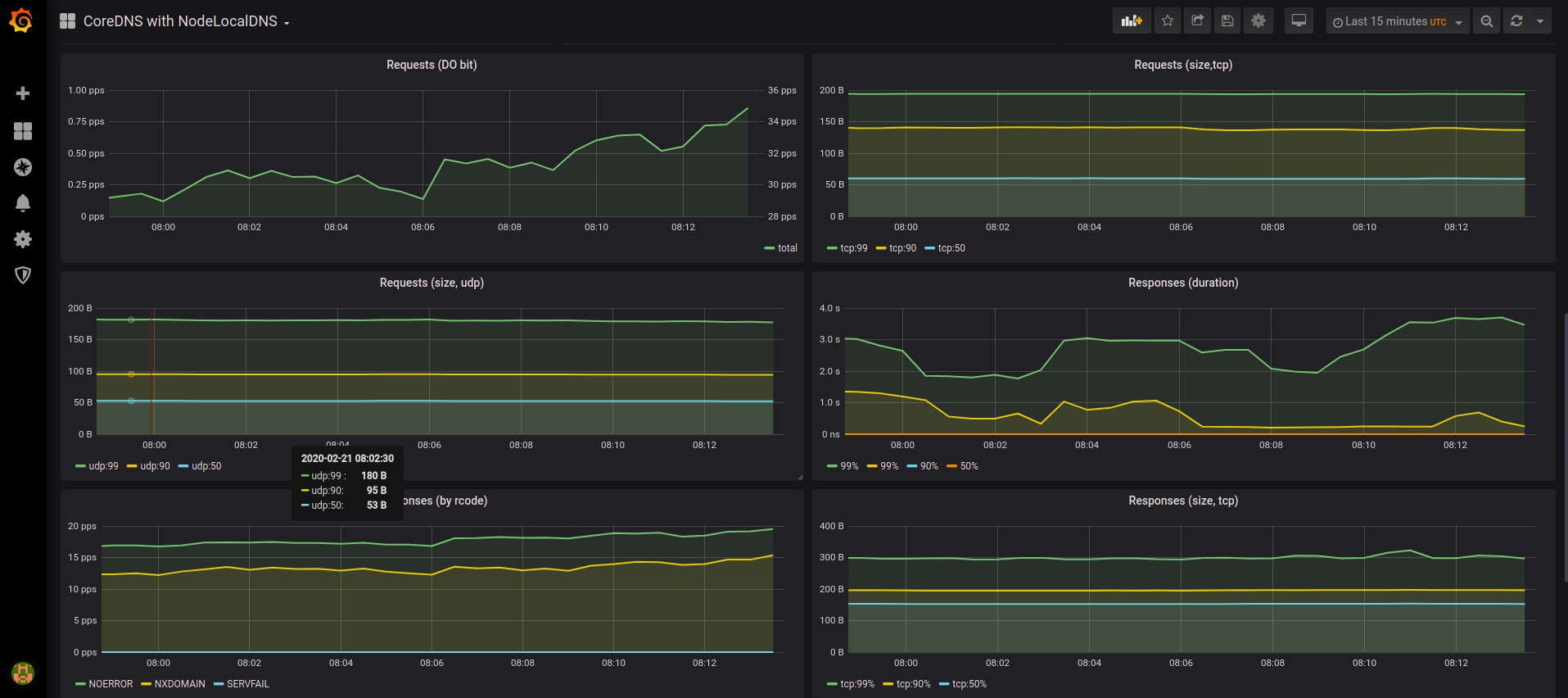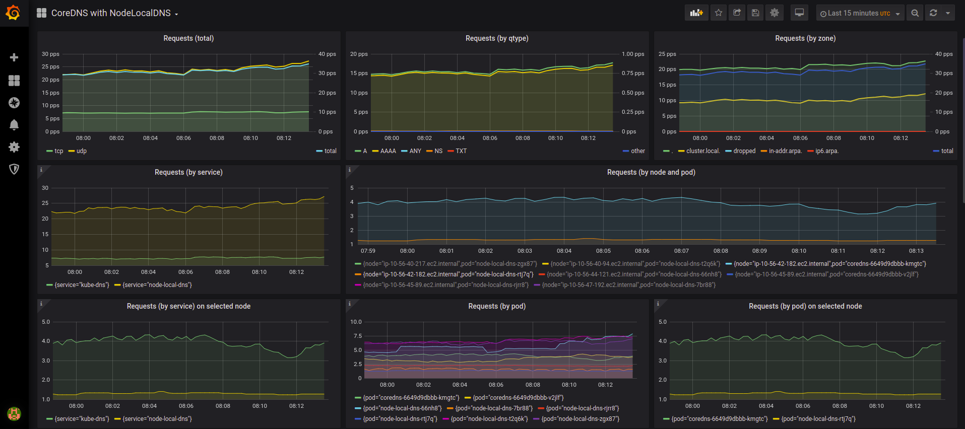 A dashboard for the CoreDNS DNS server which also exposes NodeLocal Cache metrics.