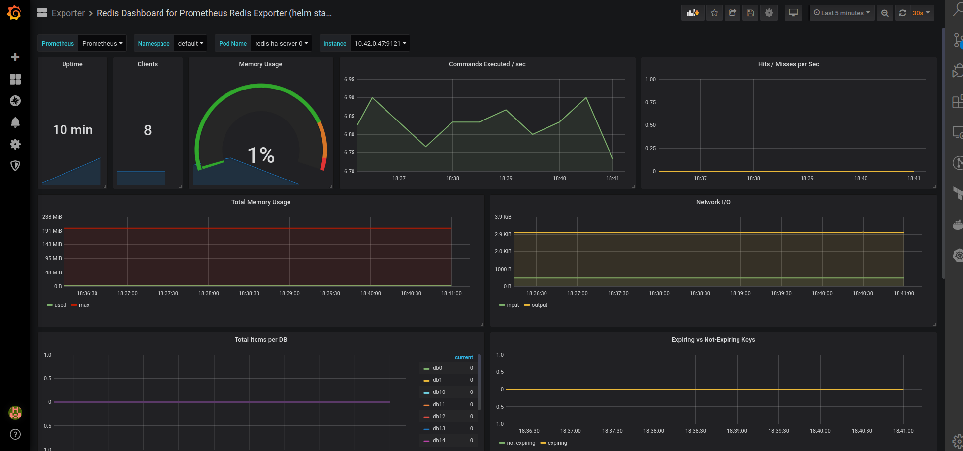 Redis Dashboard for Prometheus Redis Exporter (helm stable/redis-ha)